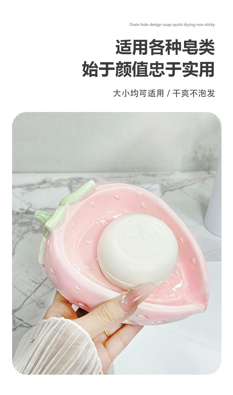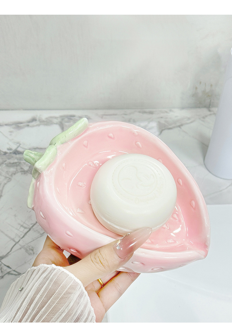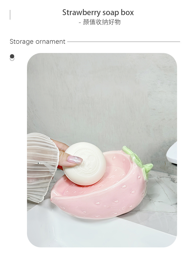 만화 크리 에이 티브 딸기 비누 상자 홈 욕실 세라믹 펀치없는 비누 접시 배수 비누 보관 랙스토어 가기