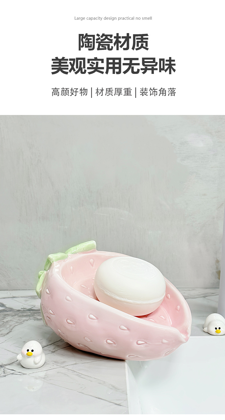 만화 크리 에이 티브 딸기 비누 상자 홈 욕실 세라믹 펀치없는 비누 접시 배수 비누 보관 랙