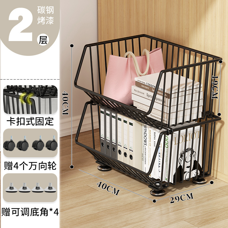 • 2层黑-全钢款【脚垫*4+滑轮*4】☆