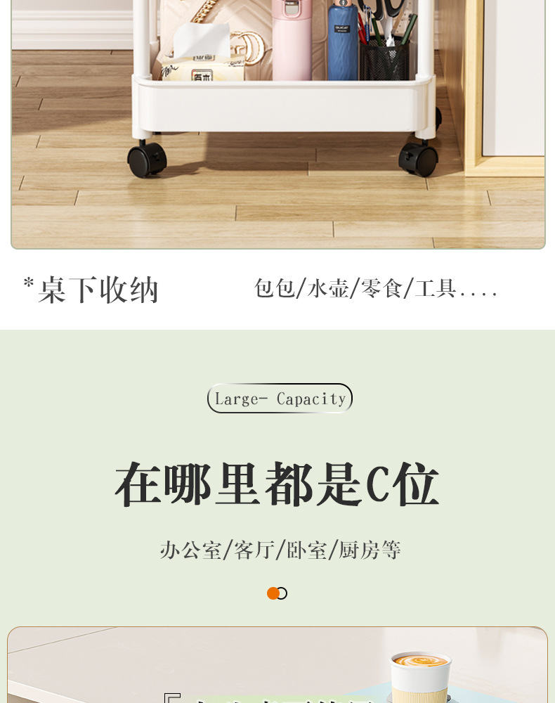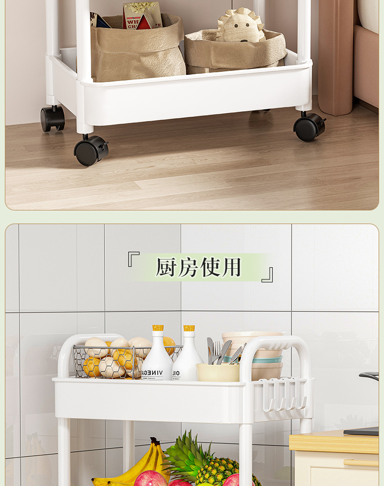 • 2层白-全钢款【脚垫*4+滑轮*4】☆