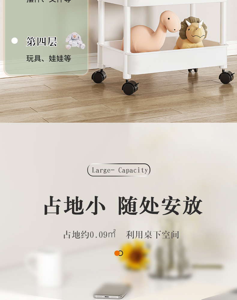 • 4层白-全钢款【脚垫*4+滑轮*4】☆