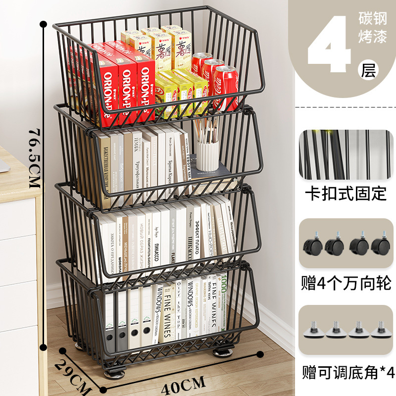 • 4层黑-全钢款【脚垫*4+滑轮*4】☆