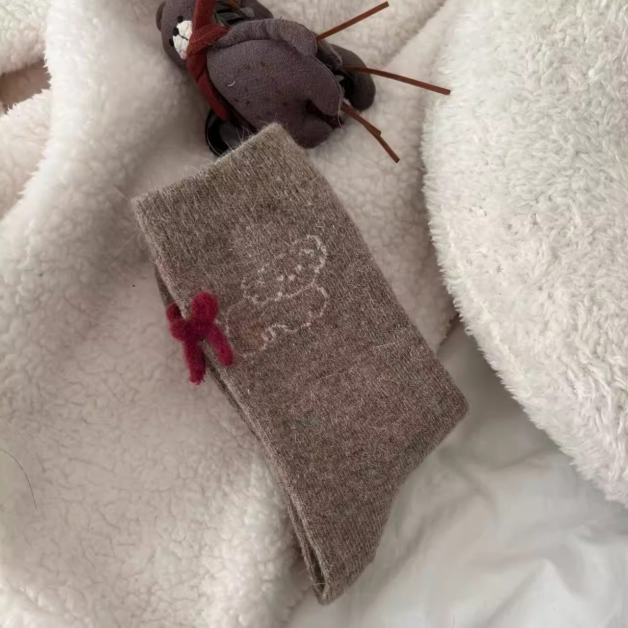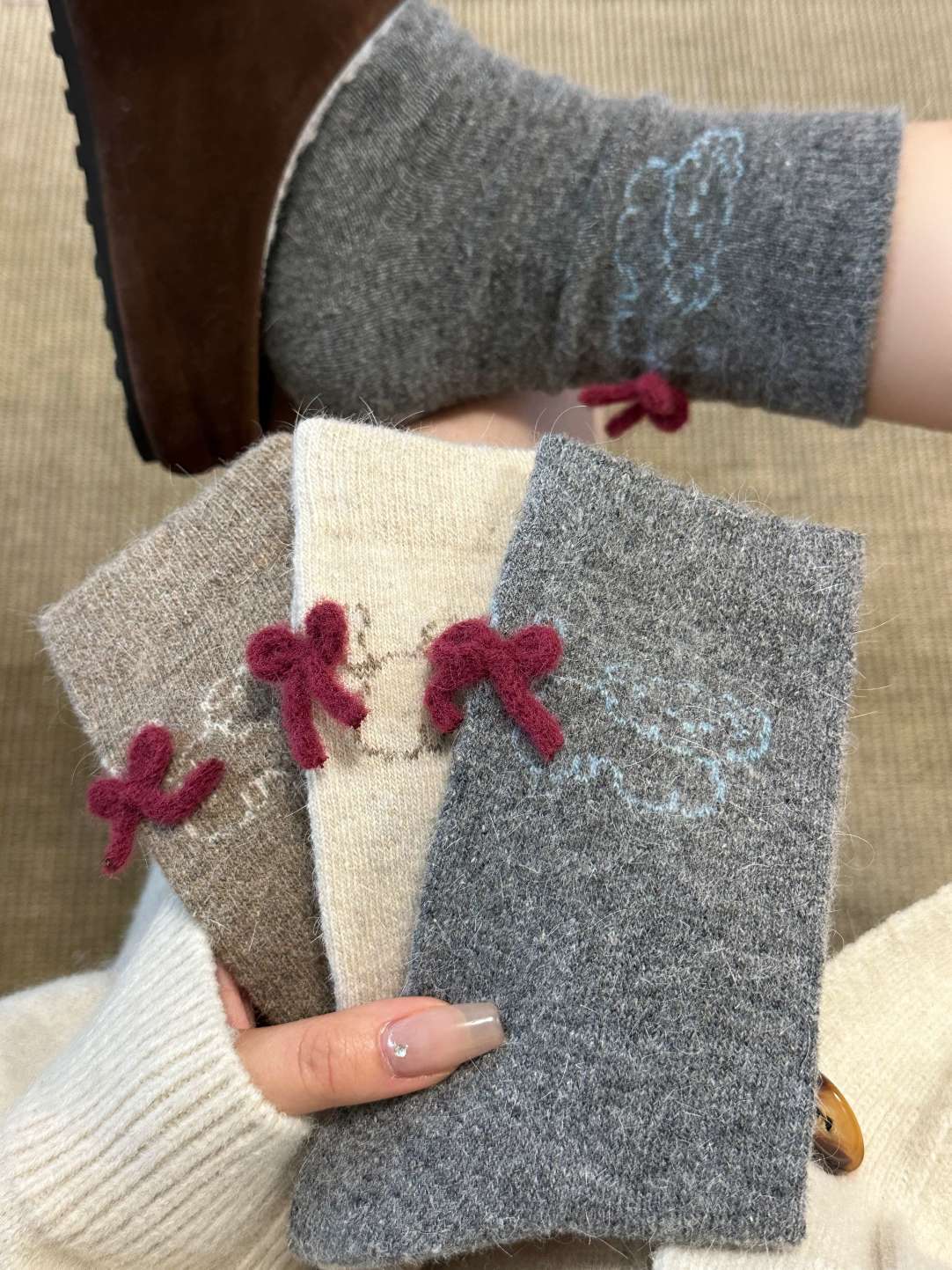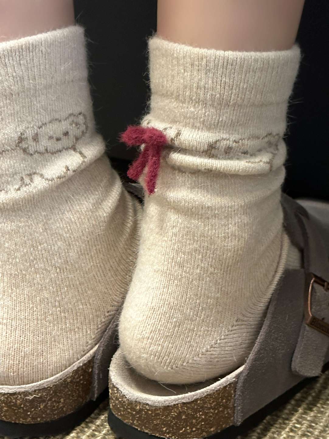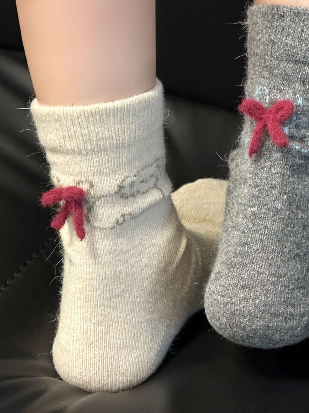 토끼털 강아지 양말 여성용 꼬리 장식품 빨간 나비 리본 귀여운 일본식 양말 따뜻한 여성용 양말 겨울 스타일스토어 가기