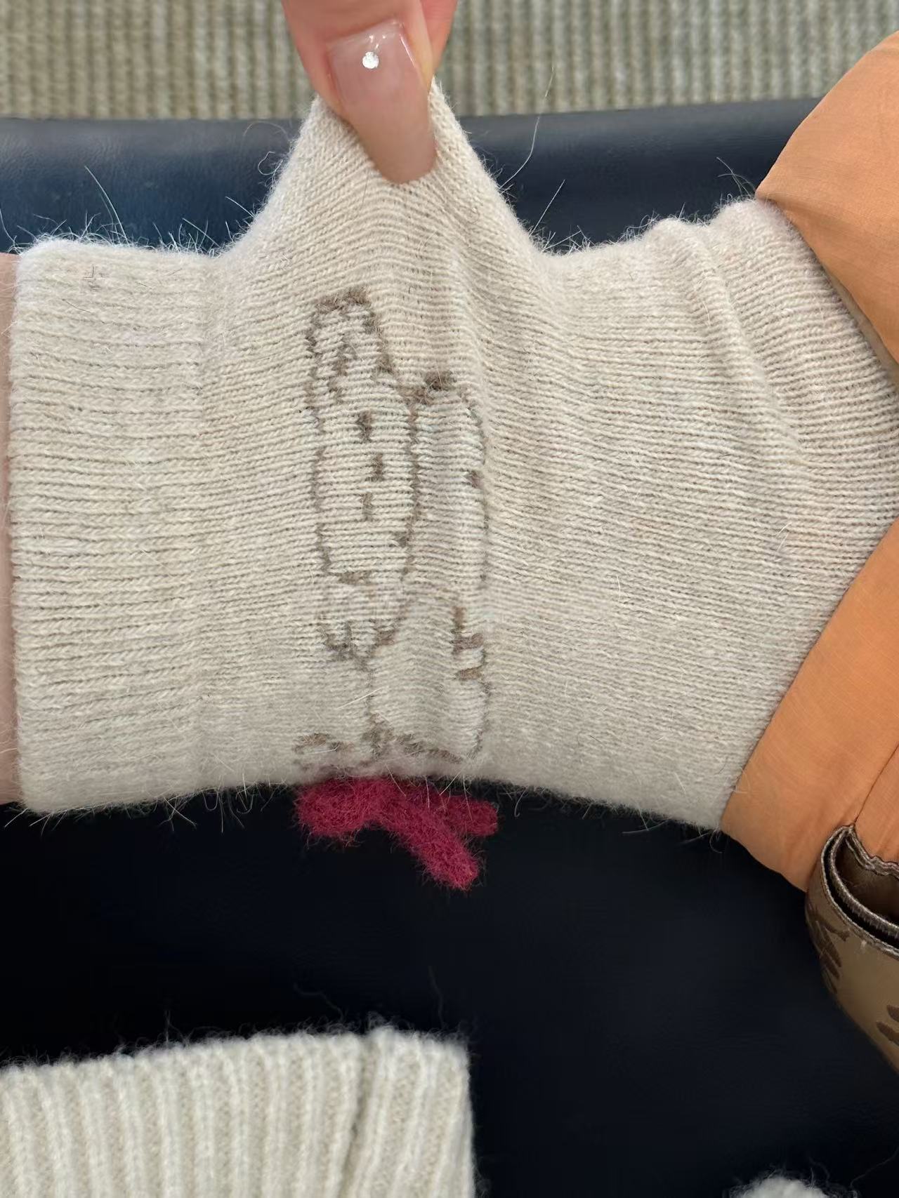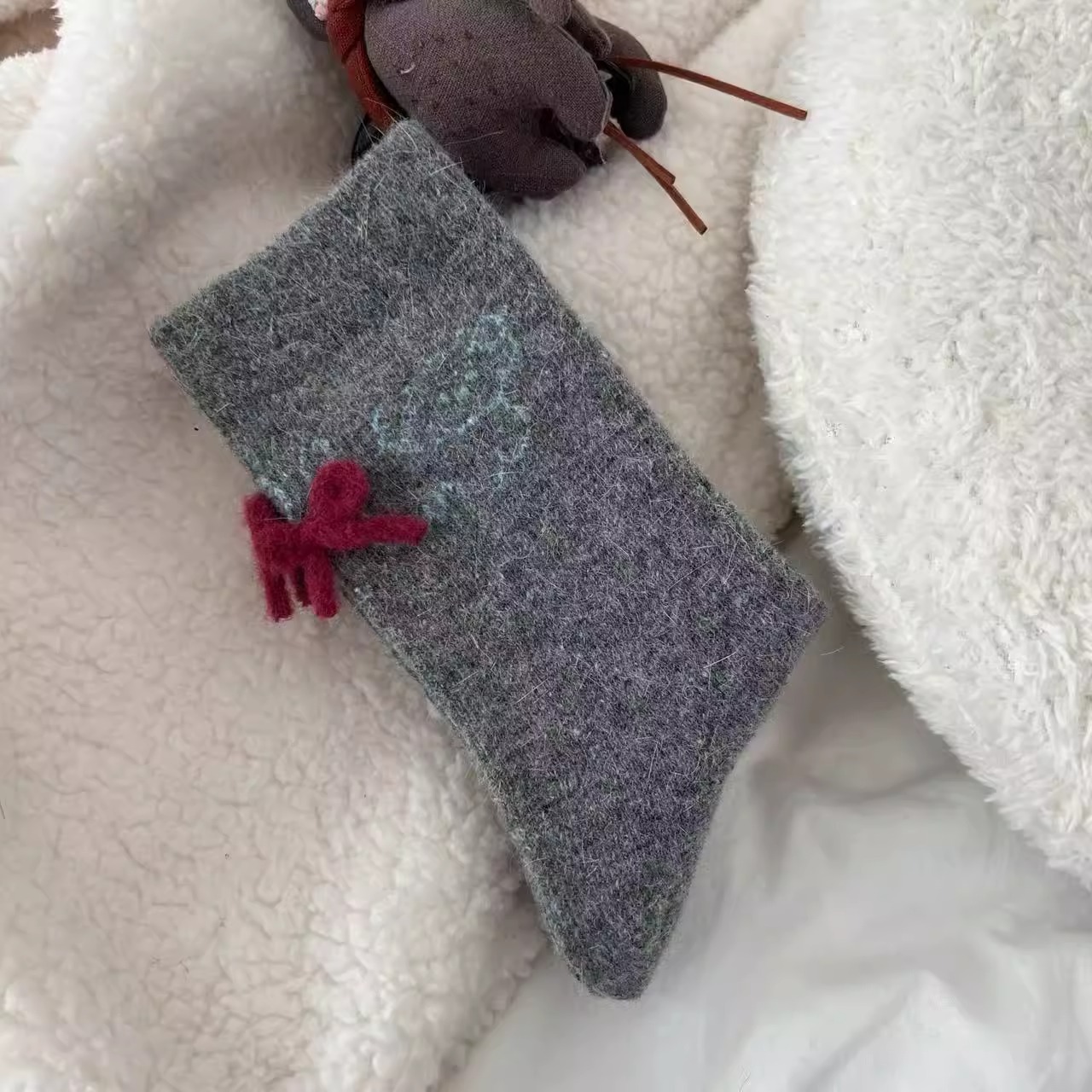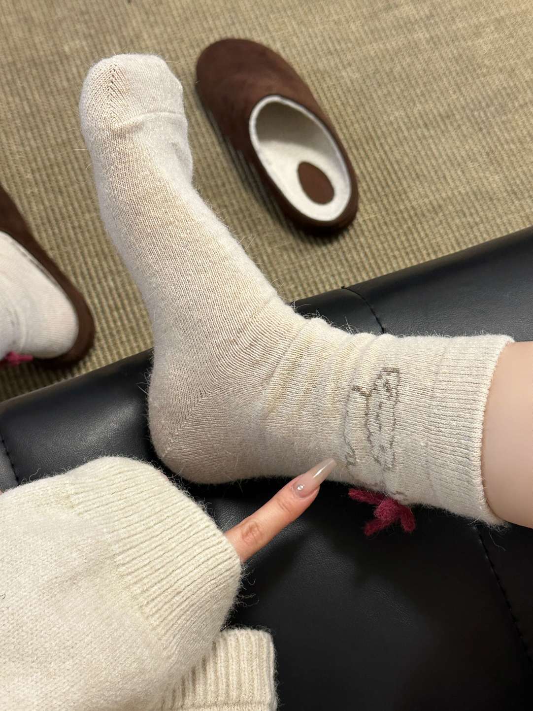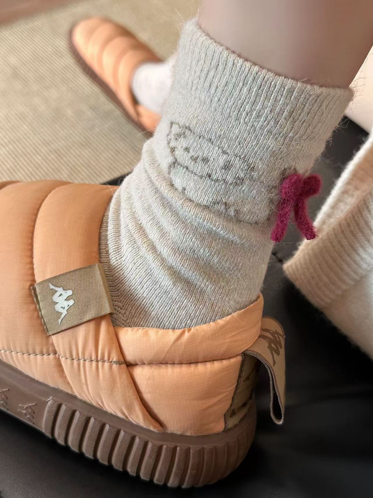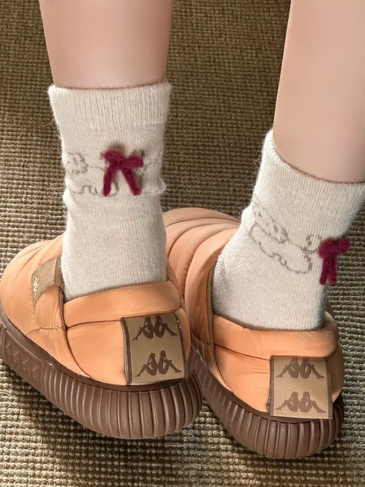 토끼털 강아지 양말 여성용 꼬리 장식품 빨간 나비 리본 귀여운 일본식 양말 따뜻한 여성용 양말 겨울 스타일스토어 가기