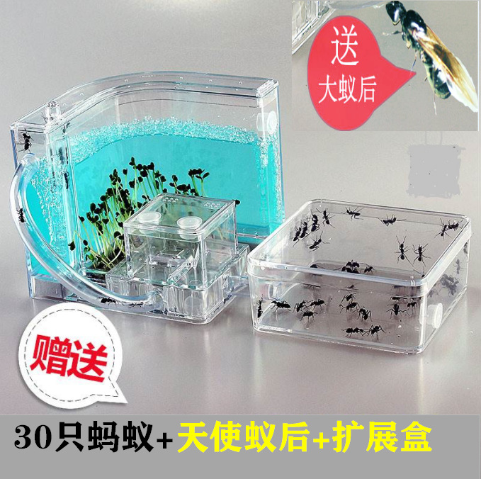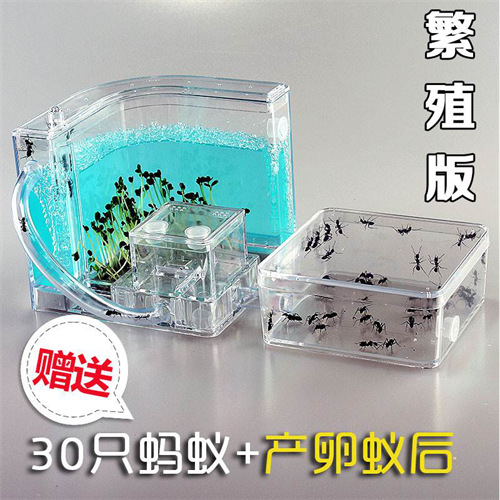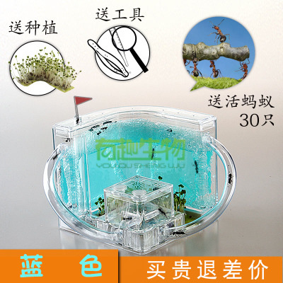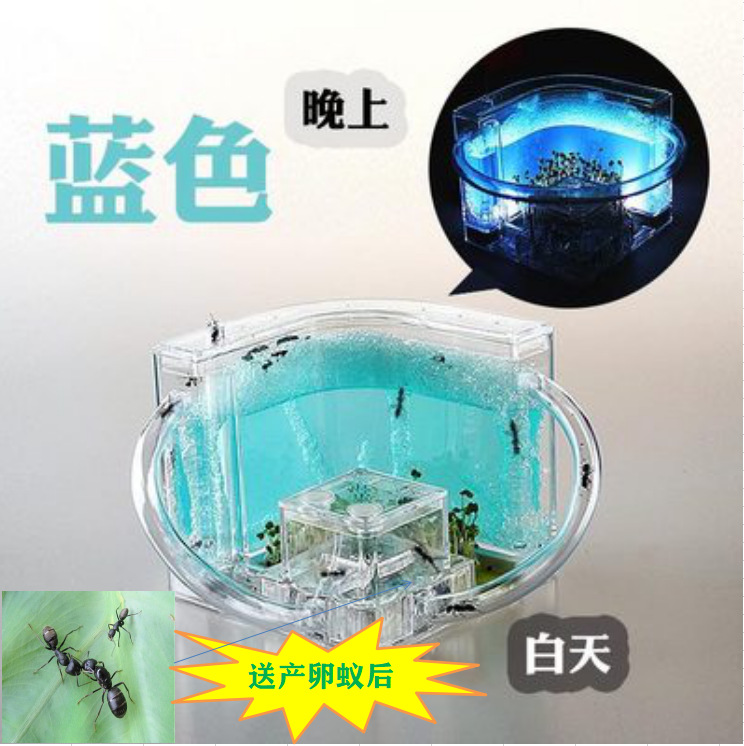 • 파란색에는 산란하는 여왕개미 + 조명이 있는 확장 상자 + 일개미 30마리 + 튜브 2개가 함께 제공됩니다.