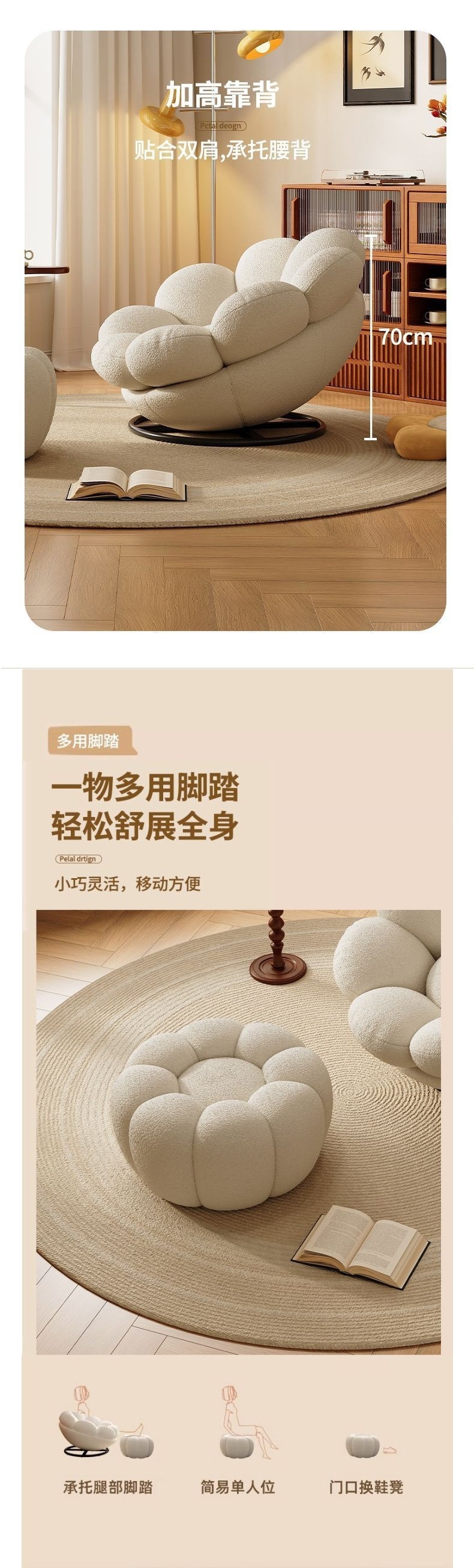 꽃 의자 꽃잎 게으른 소파 발코니 크림 스타일 침실 발코니 소파 의자 스위블 의자 인터넷 기념 3 인 거실