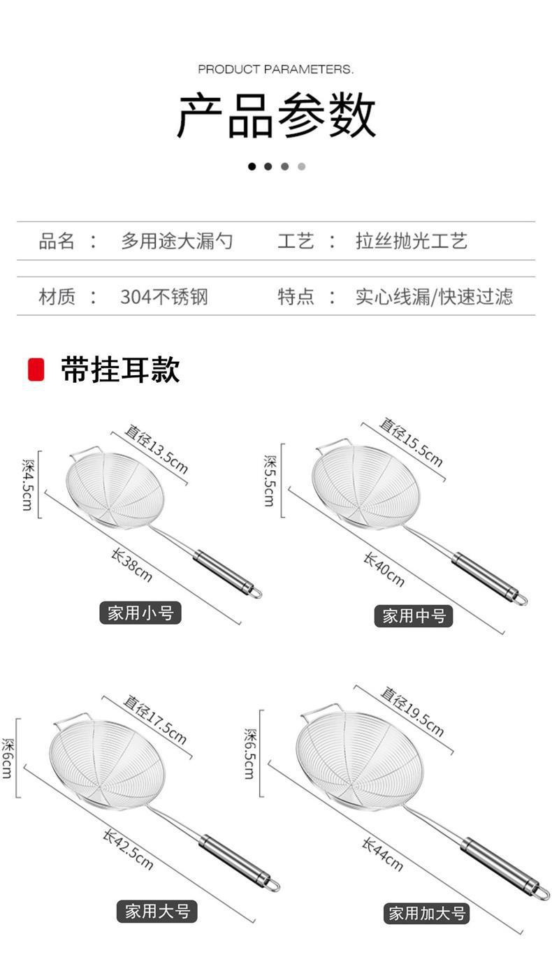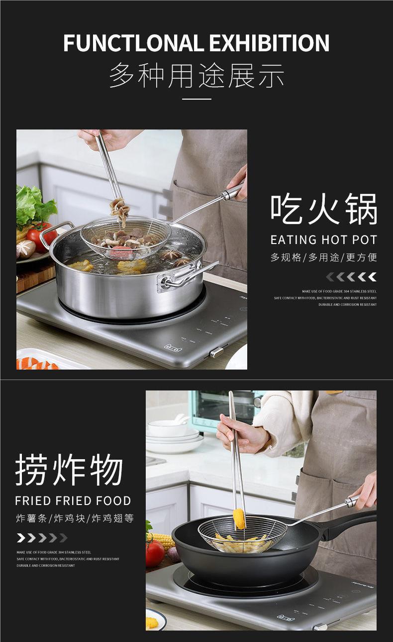 대형 Colander 304 스테인레스 스틸 가정용 만두 스푼 필터 그물 뜨거운 냄비 작은 라인 누설 주방 스트레이너