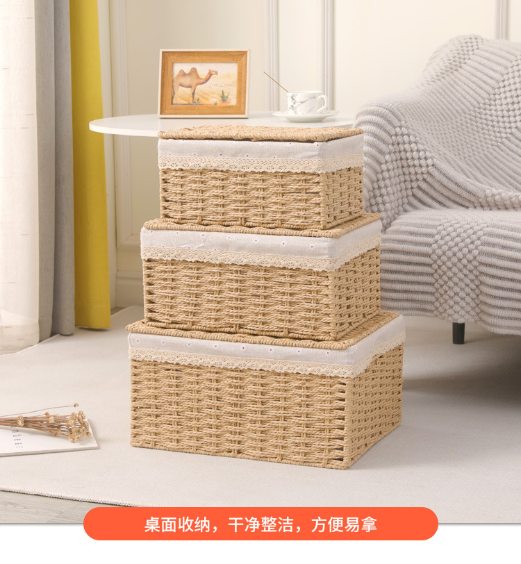 데스크탑 잡화 저장 상자 짠 저장 바구니 등나무 가정용 옷 저장 상자 화장품 저장 상자 일본식