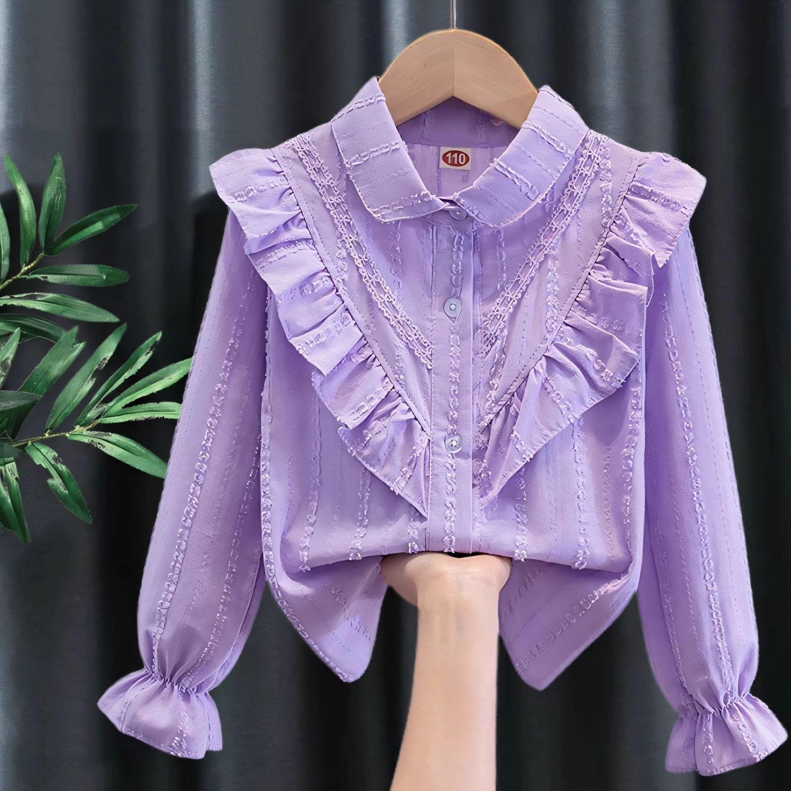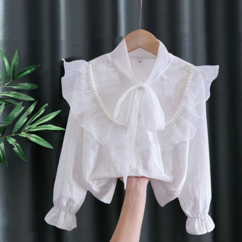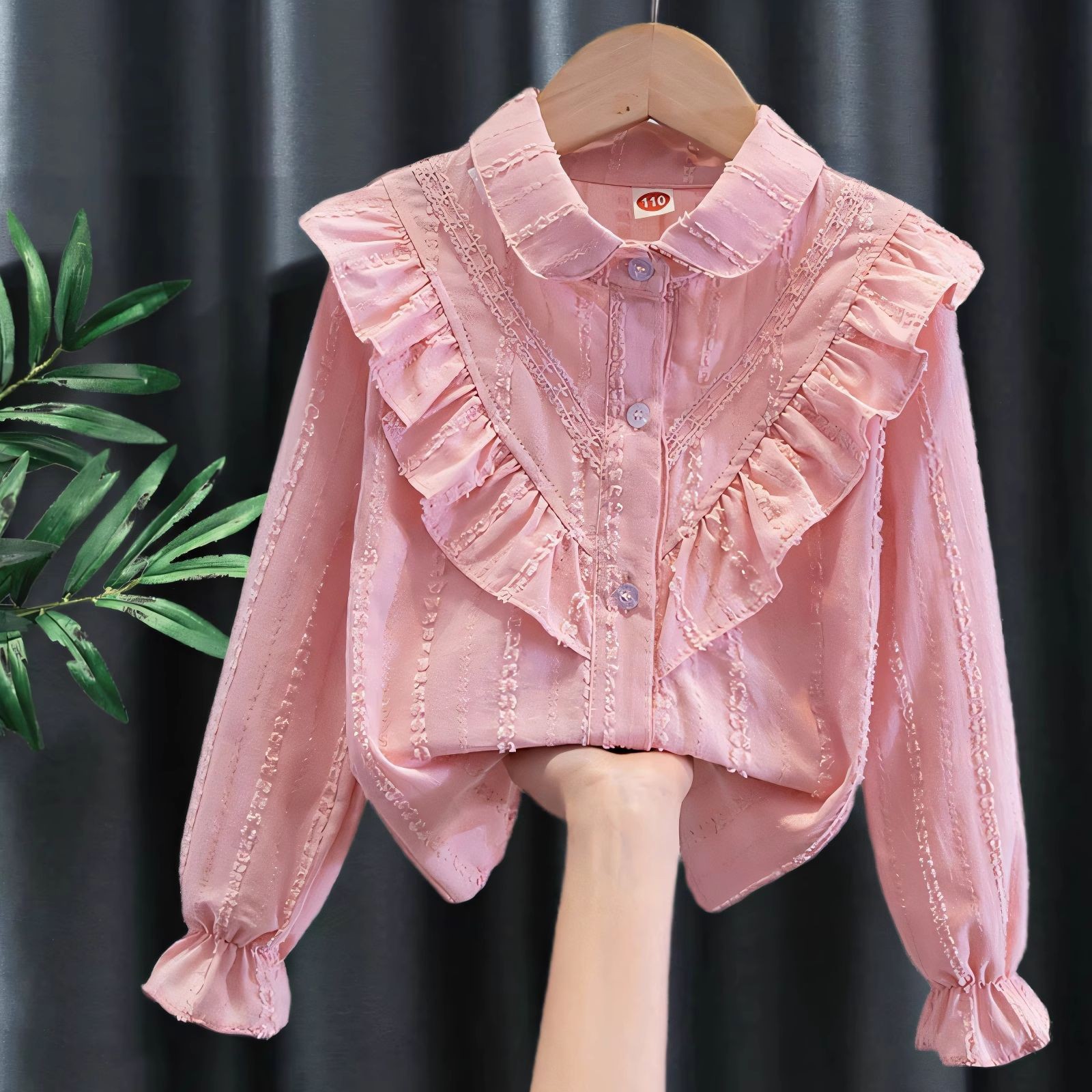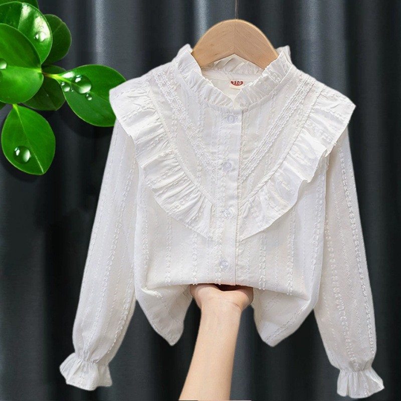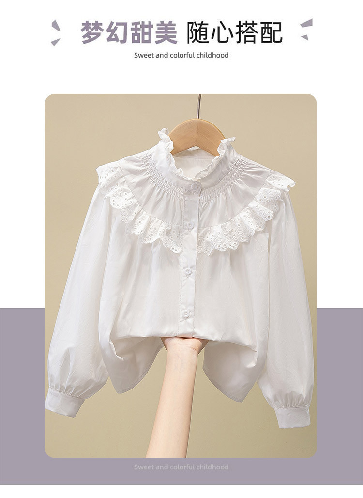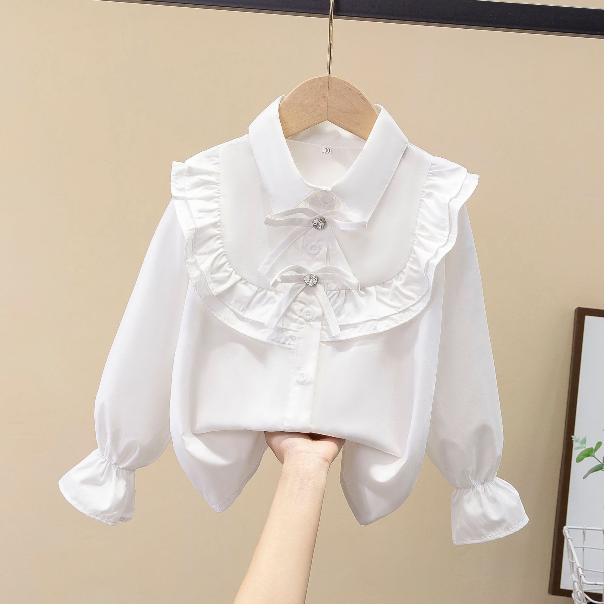 소녀 셔츠 봄과 가을 2025 새로운 어린이 면화 최고 셔츠 소녀 긴 소매 봄베이스 셔츠 대외 무역
