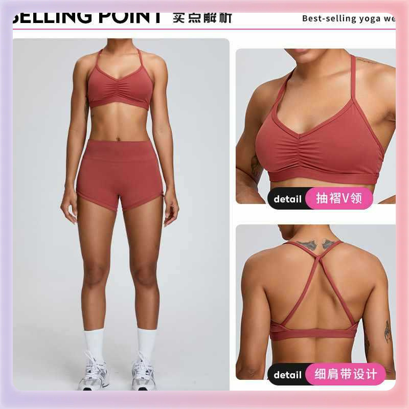 ✅ 여성용 크로스보더 누드 뷰티 백 요가 브라, 브이넥 푸쉬업 스포츠 브라, 타이트한 아우터웨어, 런닝 피트니스 조끼