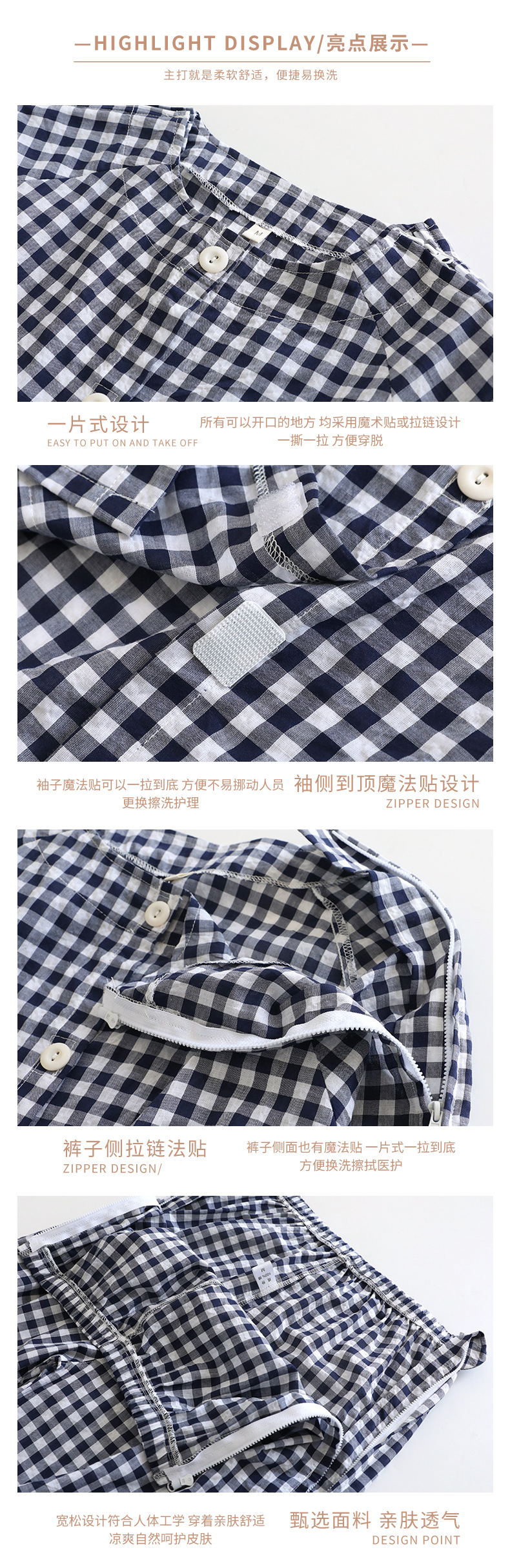 남성의 얇은 통기성 마비 요실금 침구 노인 골절 환자 수술 후 재활이 간편하고 간호 의류를 벗습니다.스토어 가기