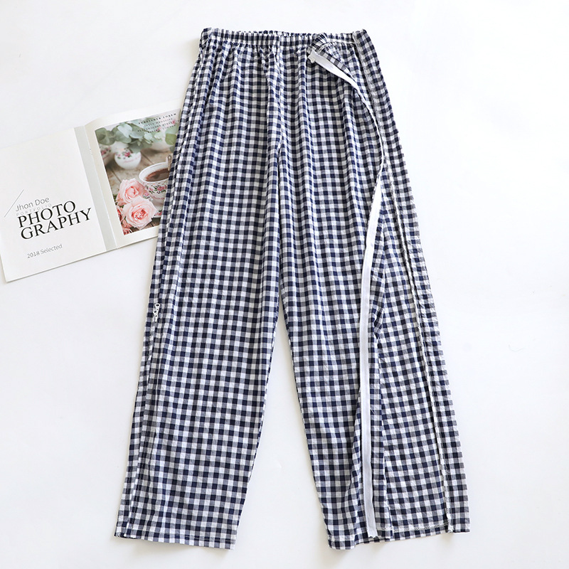 • 남성용 체크 무늬 얇은 수유복 롱 세트