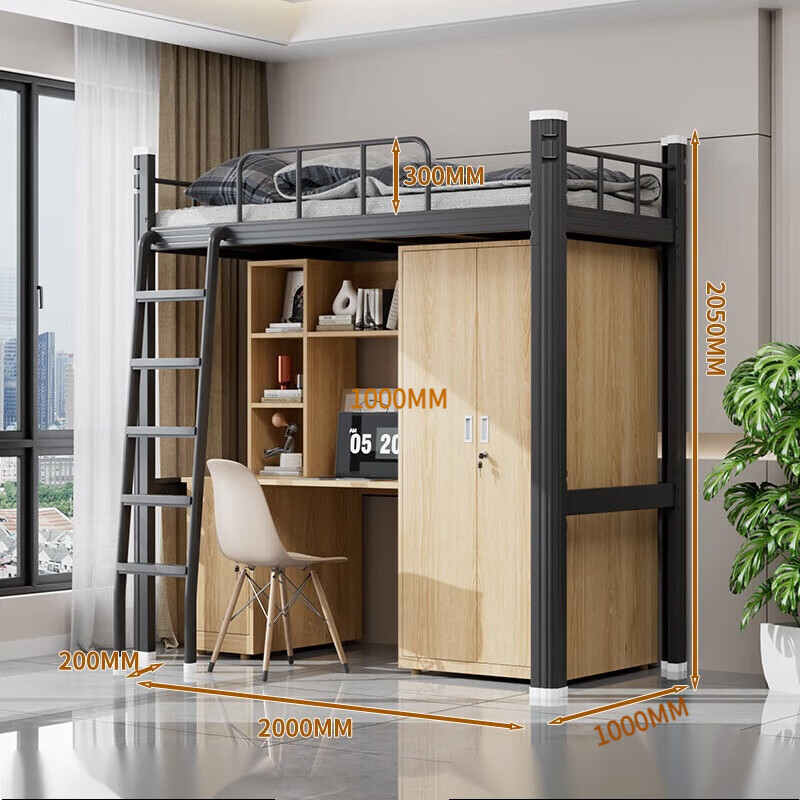 • 1000 와이드 블랙 로프트 침대 + 침대 밑 테이블 캐비닛 (다층 침대 보드 포함)