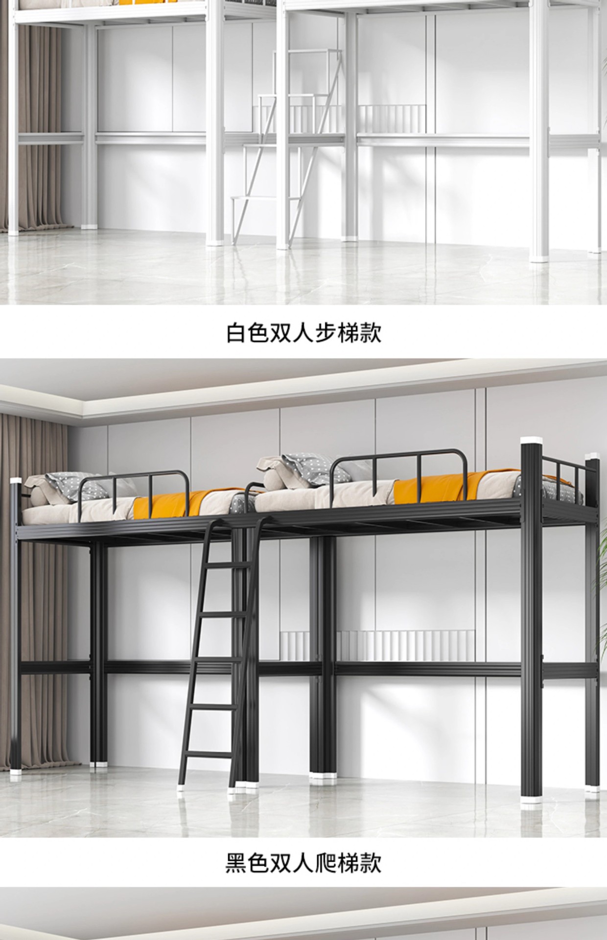 • 1000 와이드 블랙 더블 미드스텝 사다리 + 침대 밑 테이블 캐비닛 침대 보드