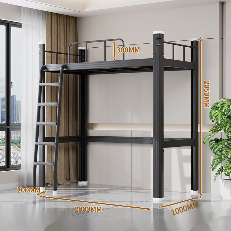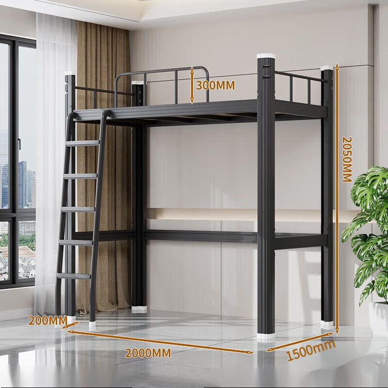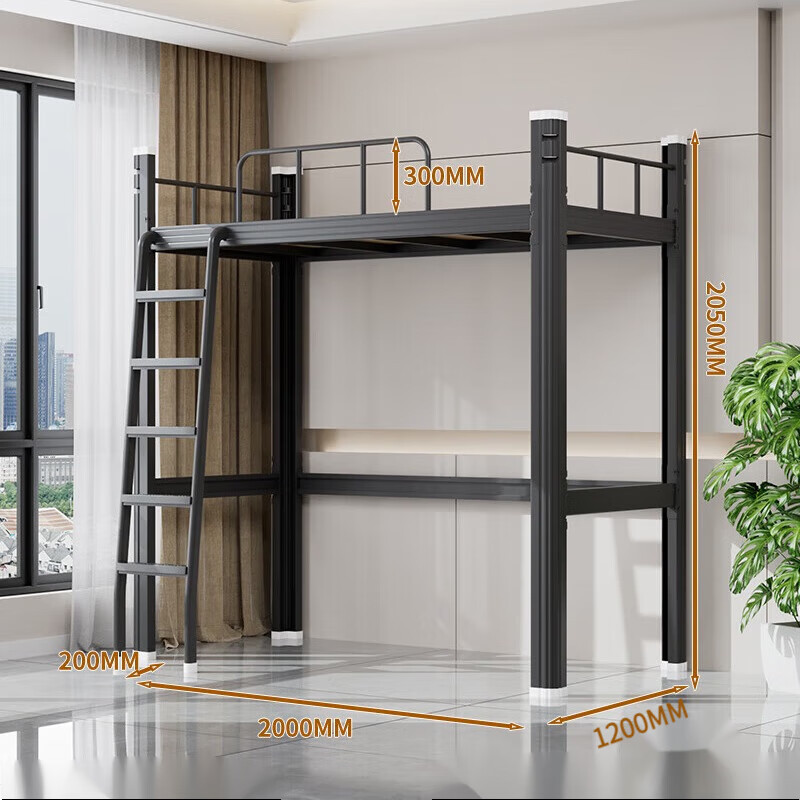 • 1200 와이드 블랙 로프트 침대 + 침대 밑 테이블 캐비닛 (다층 침대 보드 포함)