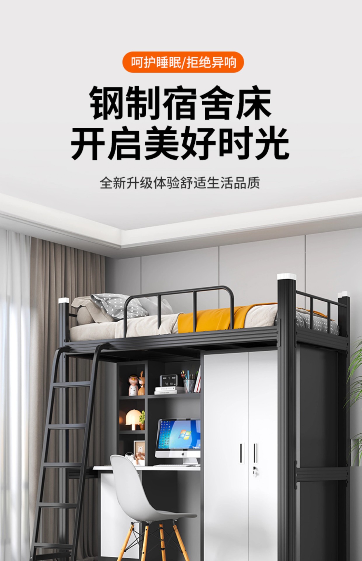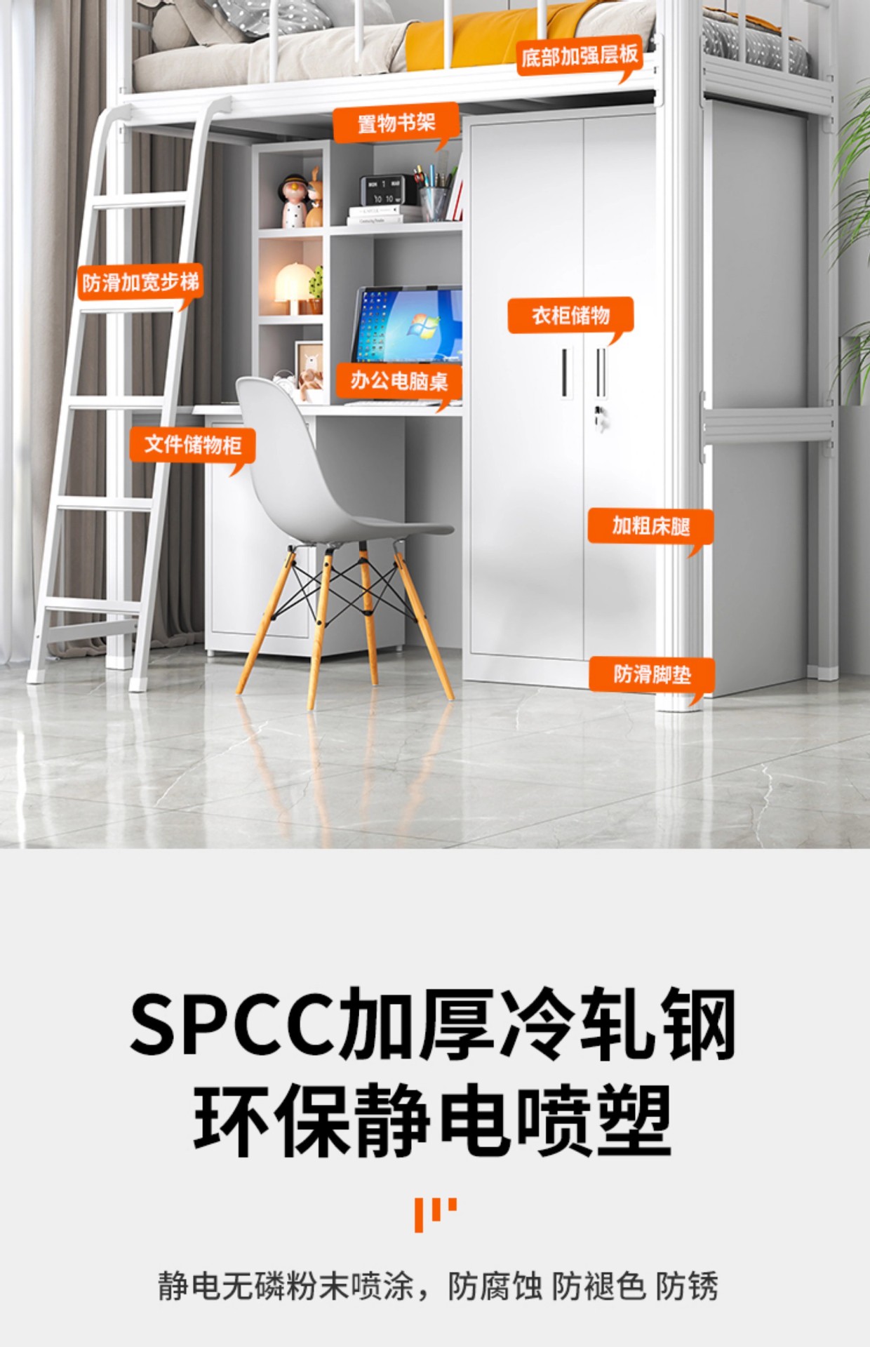 • 1000 와이드 화이트 로프트 침대 + 침대 밑 테이블 캐비닛 (다층 침대 보드 포함)