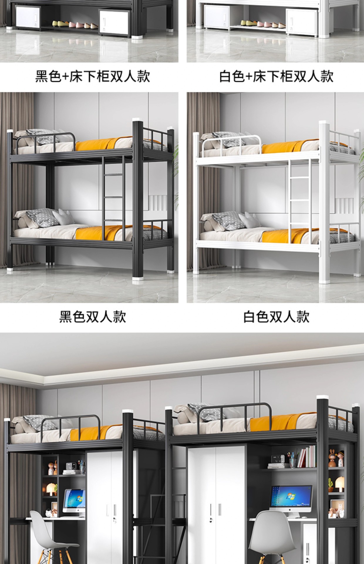 아파트 침대와 테이블 조합, 대학 기숙사 침대, 철제 침대, 소형 가정용 높낮이 철제 침대