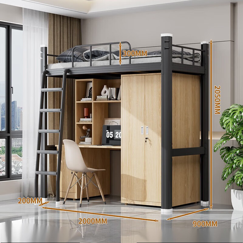 • 900 와이드 블랙 로프트 침대 + 침대 밑 테이블 캐비닛 (다층 침대 보드 포함)