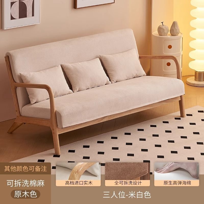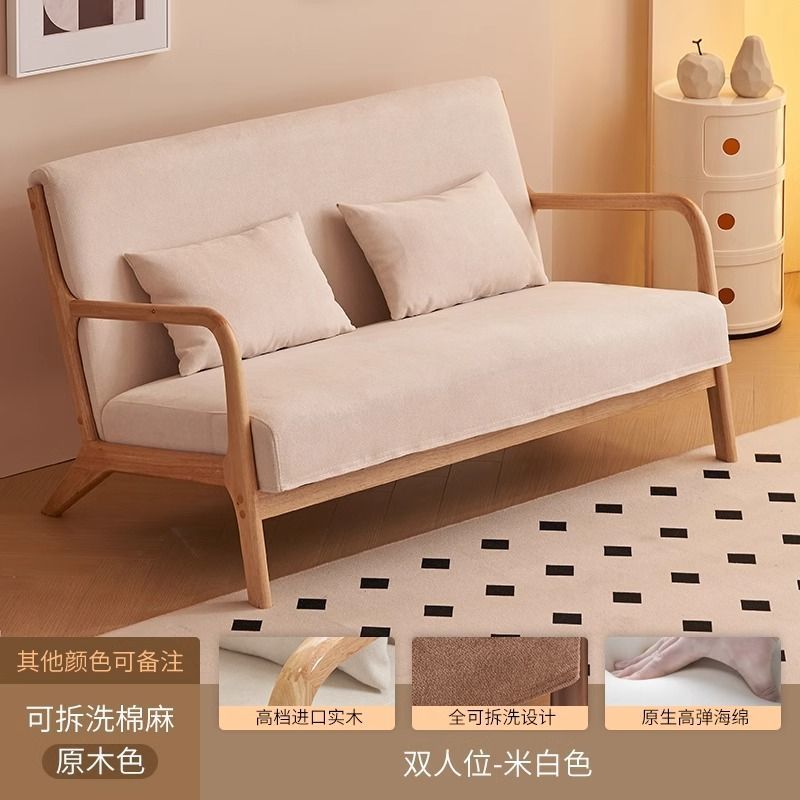 • 우드 컬러 의자 2개 + 커피 테이블 - 오프화이트 [탈부착 및 세탁 가능한 패브릭]