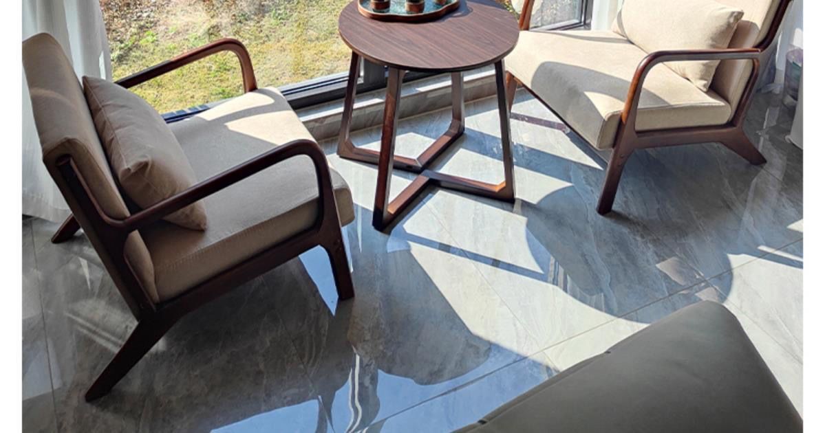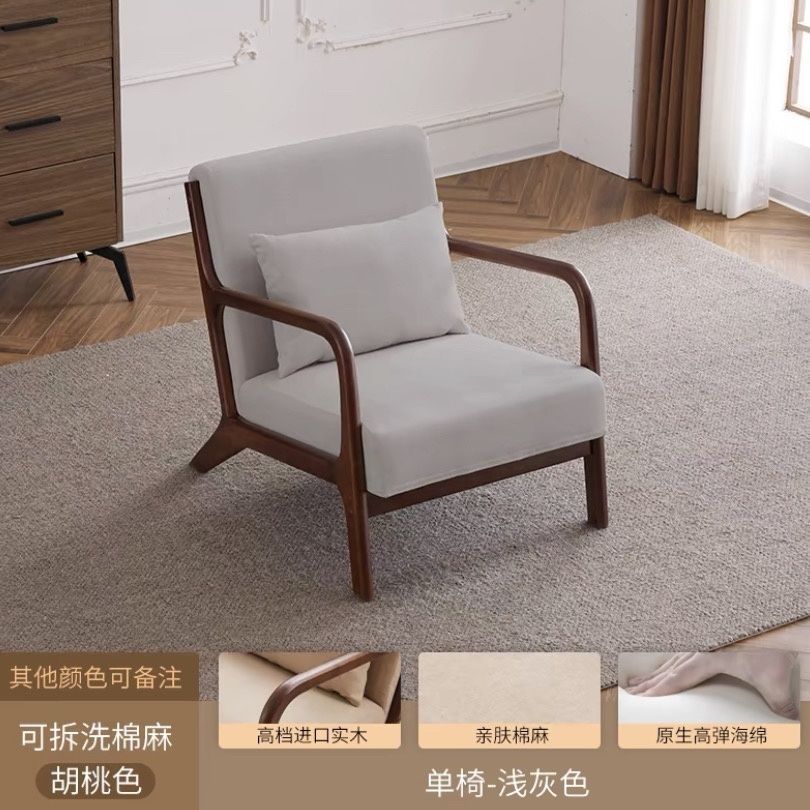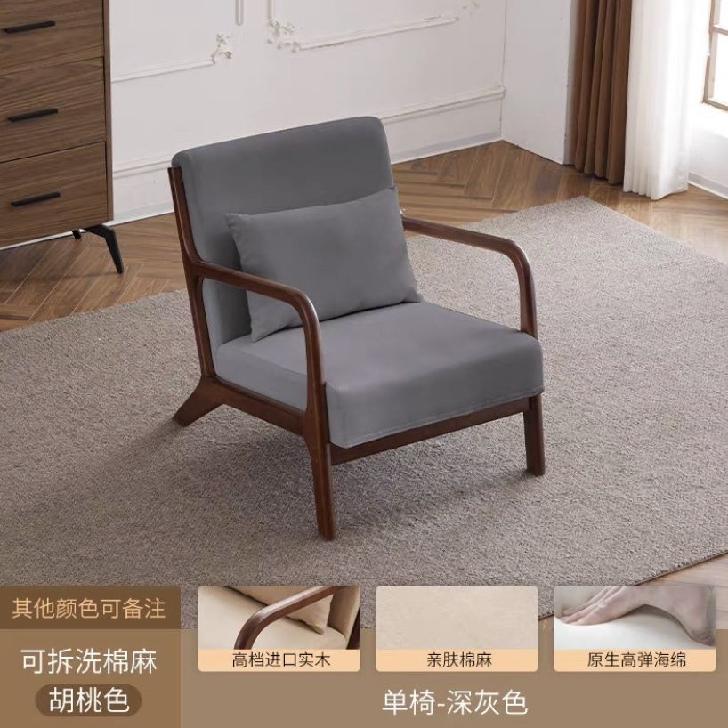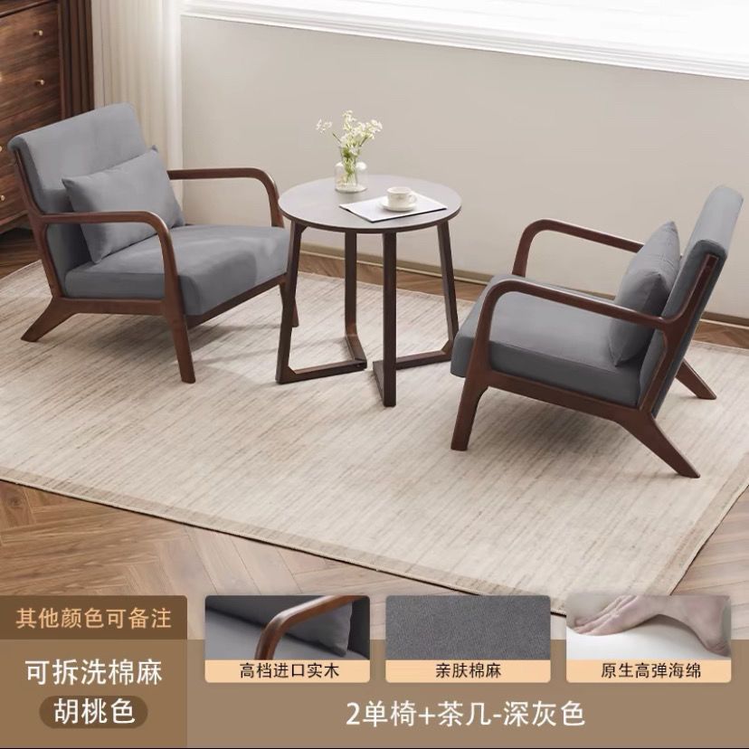 • 월넛 컬러 의자 2개 + 커피 테이블 - 다크 그레이 [탈부착 및 세탁 가능한 패브릭]