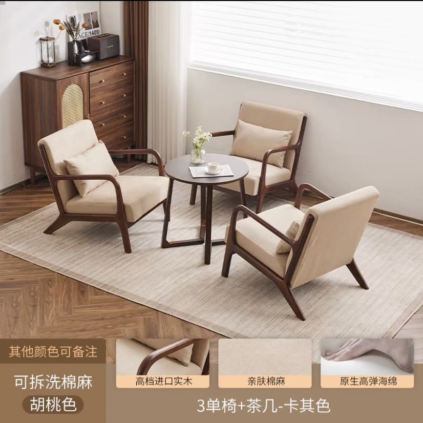 • 월넛 싱글체어 + 발판 + 커피테이블 - 카키