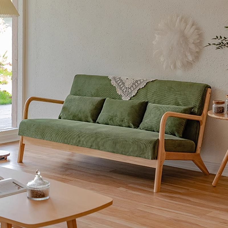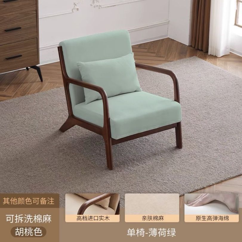 • 월넛 컬러 의자 2개 + 커피 테이블 - 얇은 그린 [탈부착 및 세탁 가능한 원단]