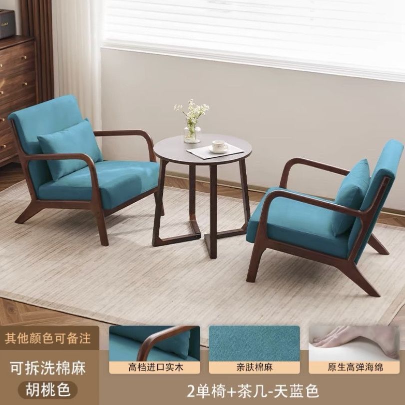 • 월넛 컬러 의자 2개 + 커피 테이블 - 스카이블루 [탈부착 및 세탁 가능한 원단]