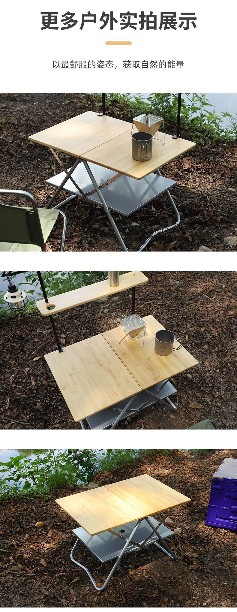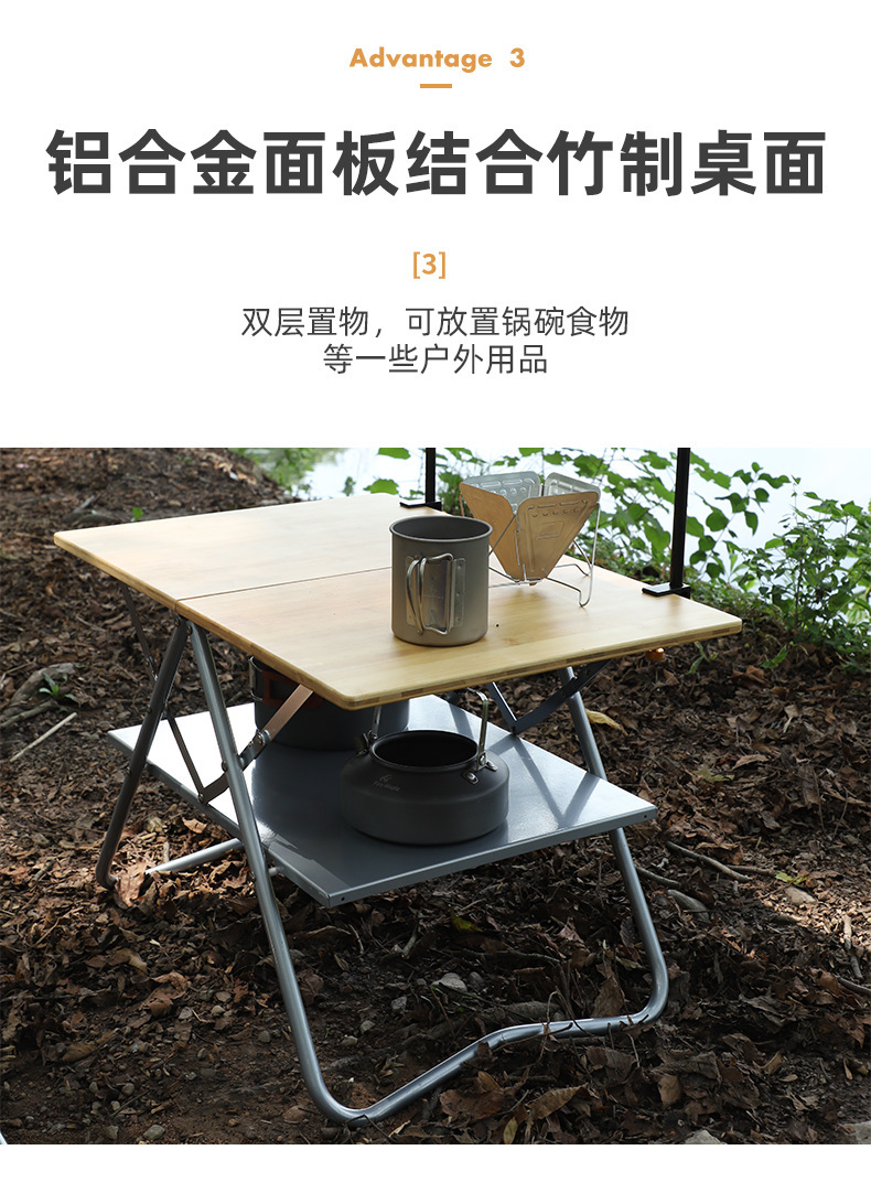 • [두꺼워진 새로운 업그레이드] 대나무 표면 빠른 개방 테이블 세트