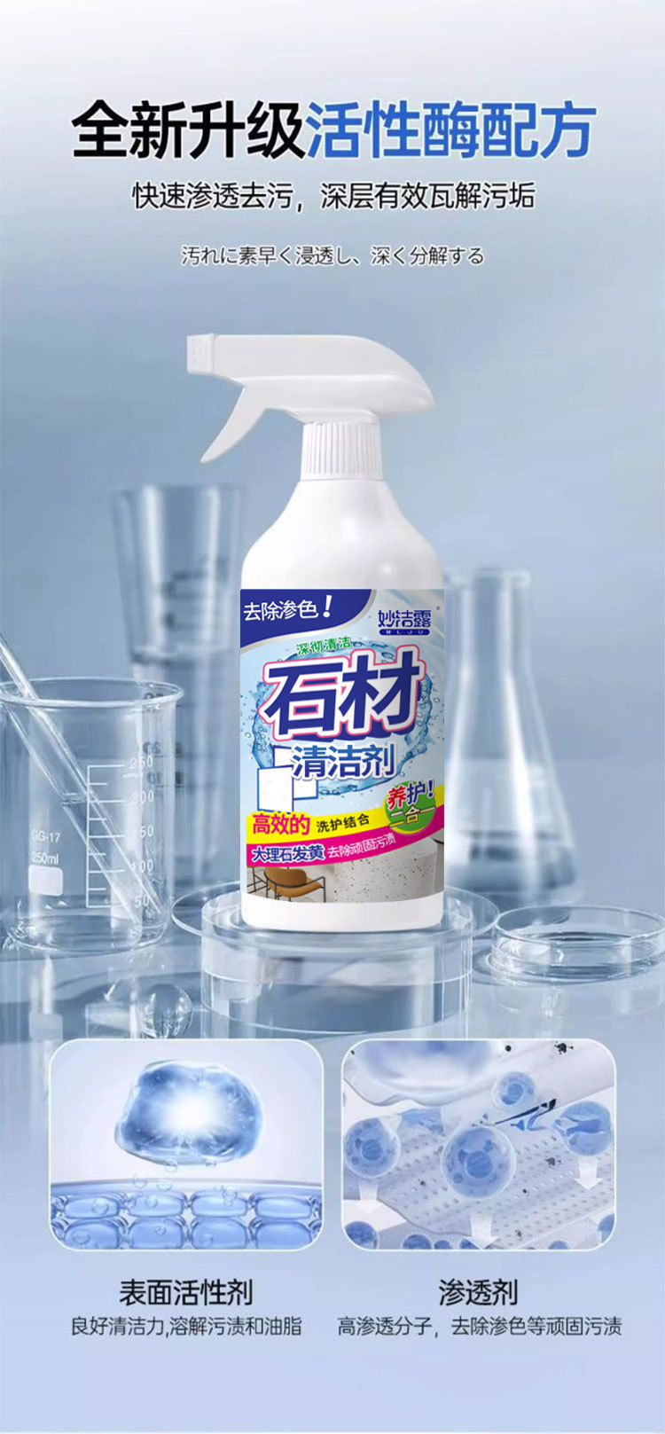 대리석 세척제, 강력한 오염 제거 및 연마, 주방 석영 석판 카운터 얼룩 방지 석판 특수 석재 세척제