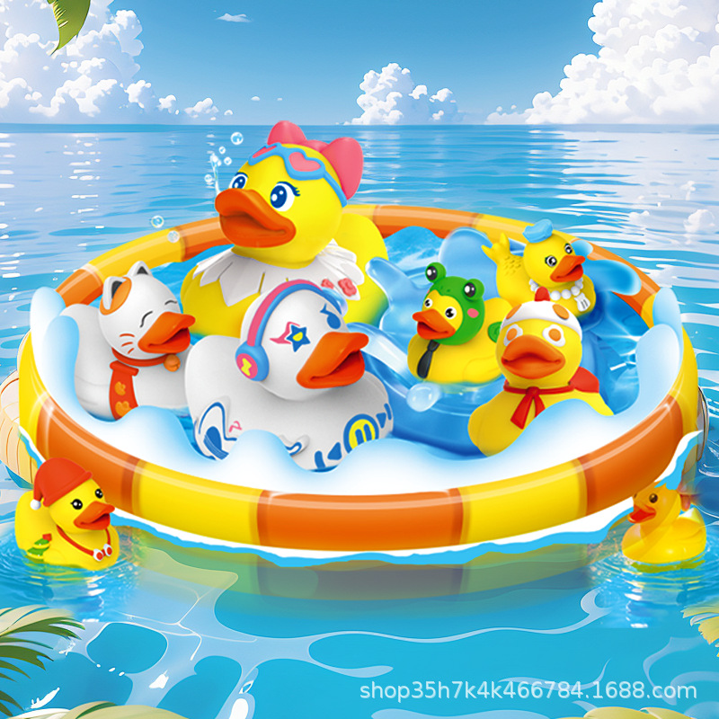 국경 간 어린이 아기 목욕 물 작은 노란 오리 작은 오리 물 놀이 장난감 아기 꼬치 작은 비닐 동물스토어 가기