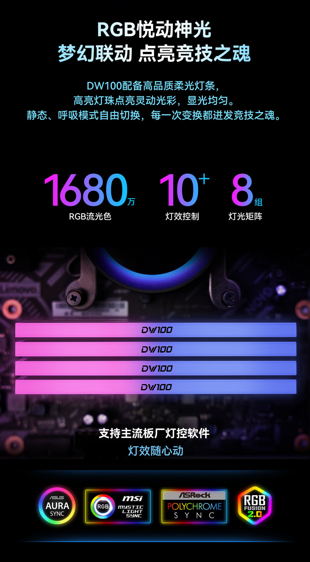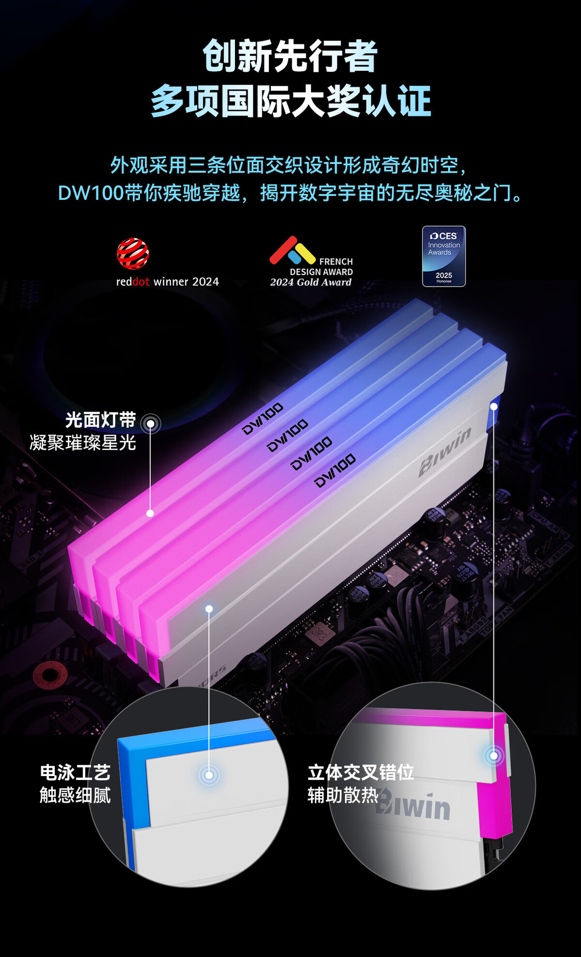 Baivi DDR5 6000 주파수 C28 시퀀스 32G 데스크탑 메모리 모듈 타임 스페이스 워커 DW100 RGB 라이트 스트립