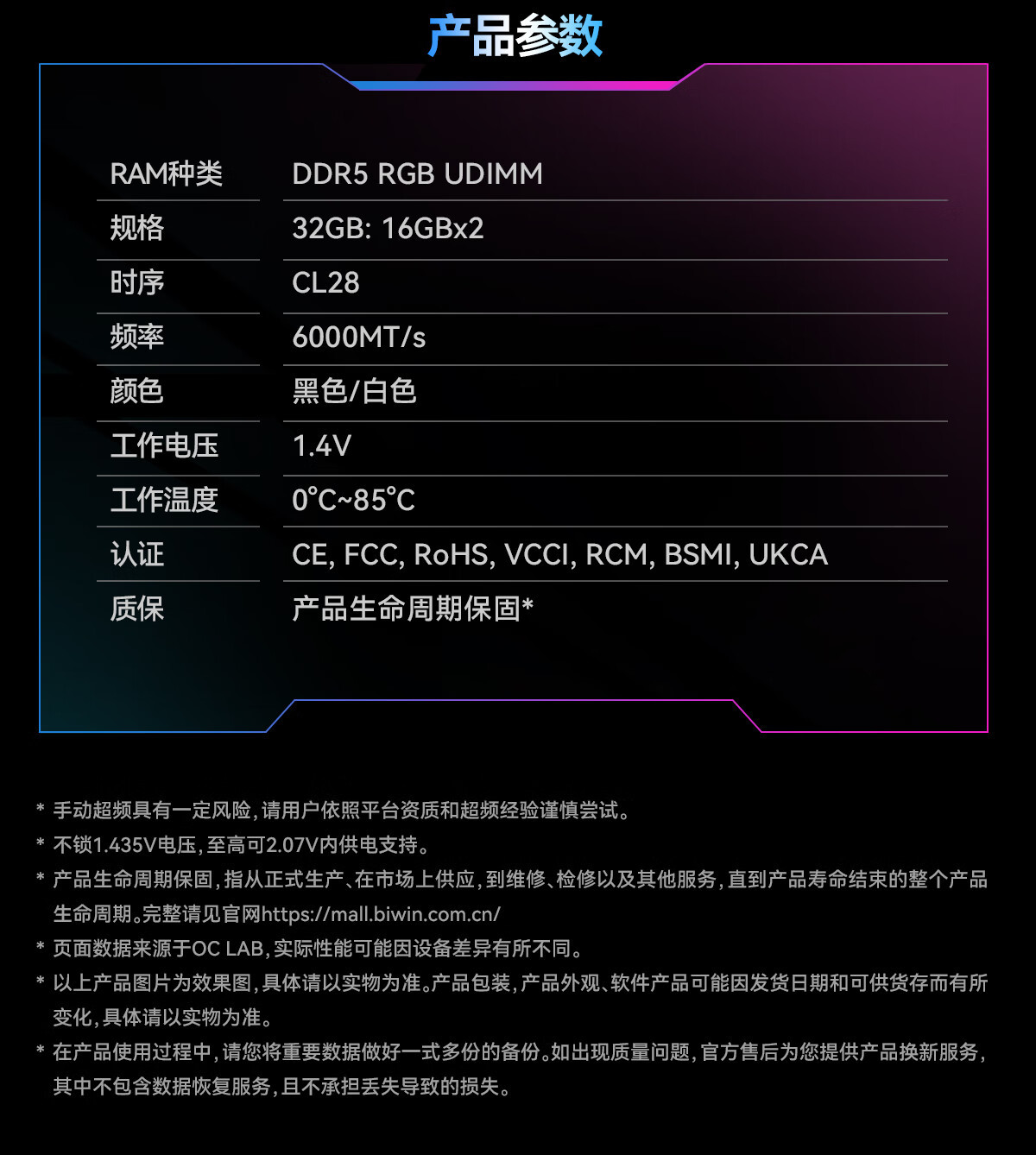 Baivi DDR5 6000 주파수 C28 시퀀스 32G 데스크탑 메모리 모듈 타임 스페이스 워커 DW100 RGB 라이트 스트립스토어 가기