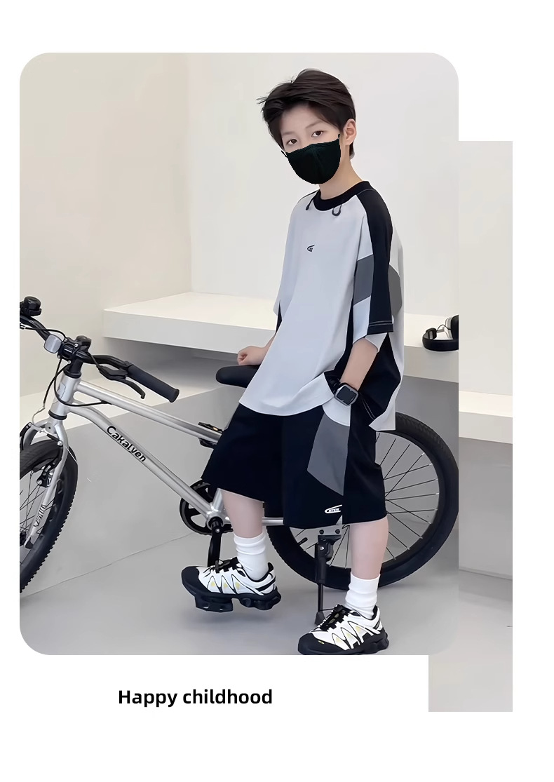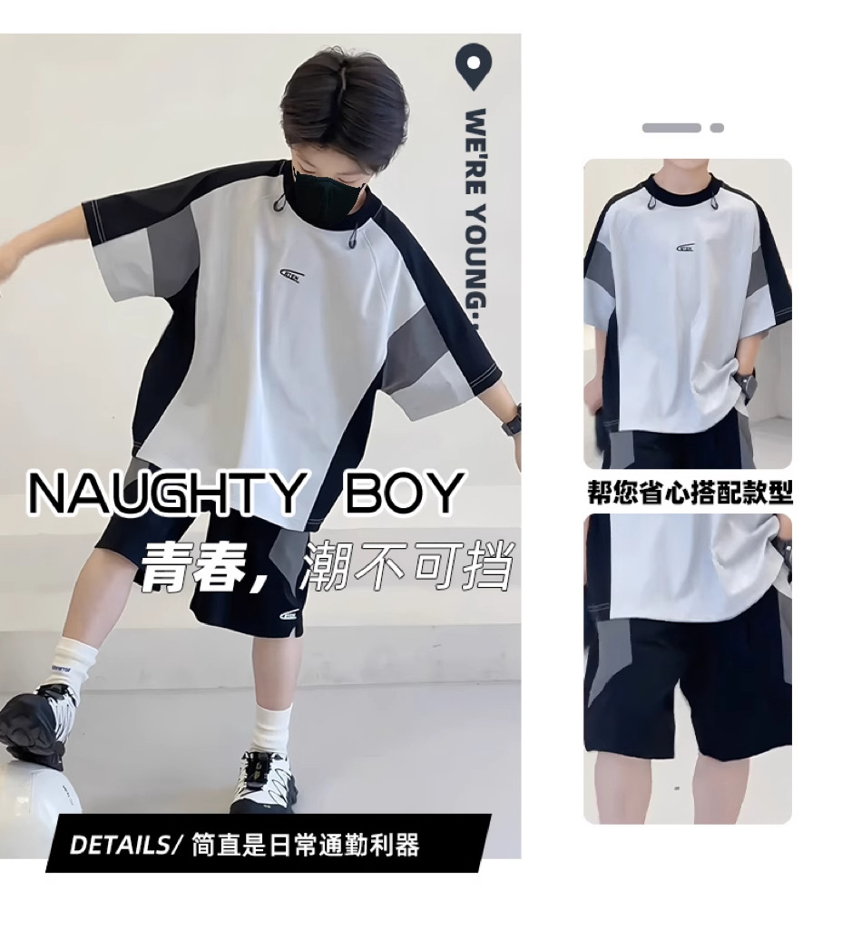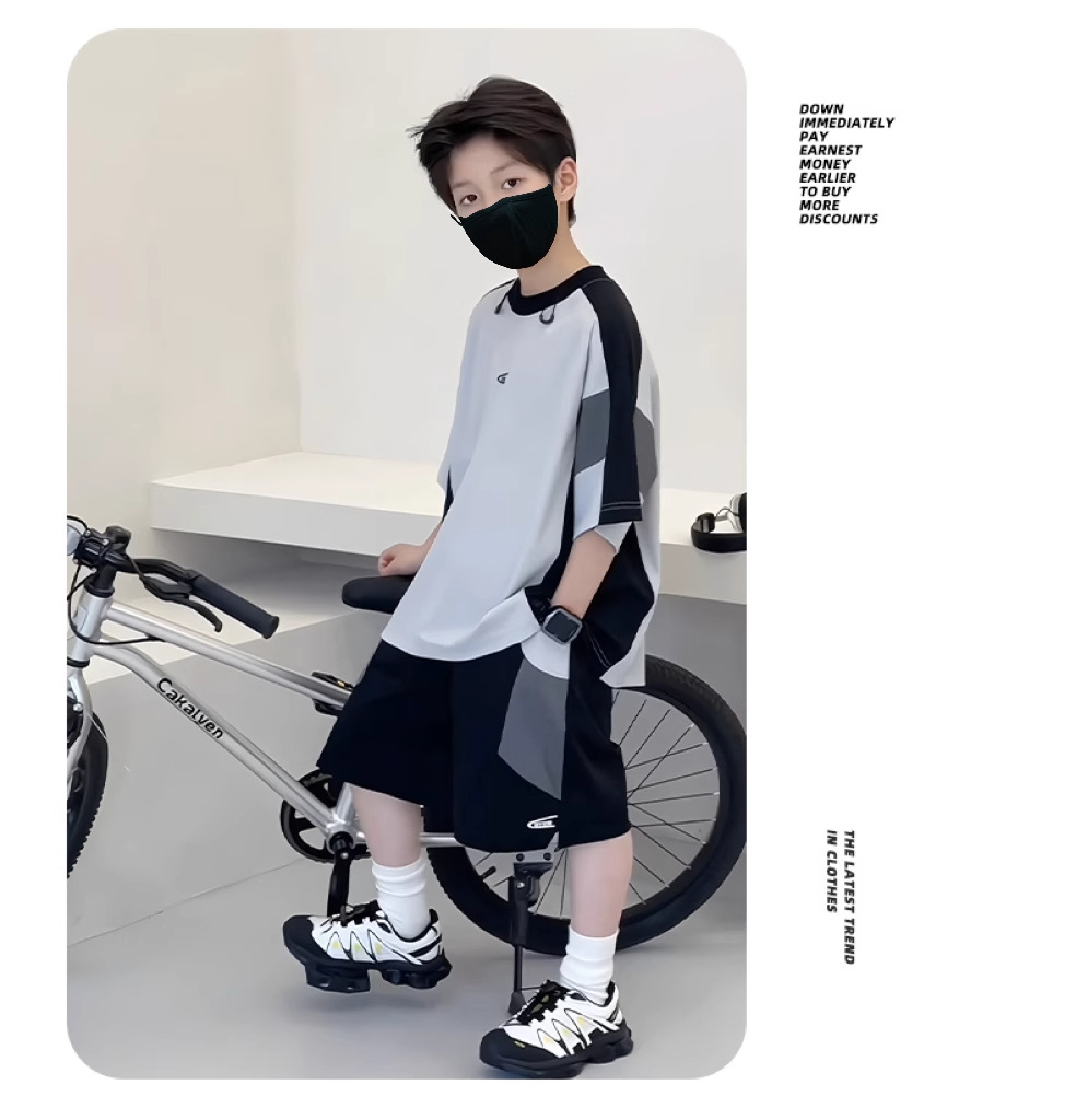 아동복 소년 여름 속건 양복 2025 새로운 아동 캐주얼 유니폼 소년 잘 생긴 여름 중대형 아동 트렌드스토어 가기