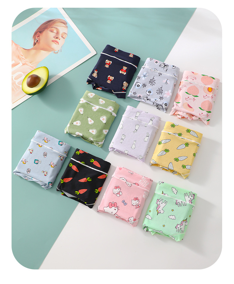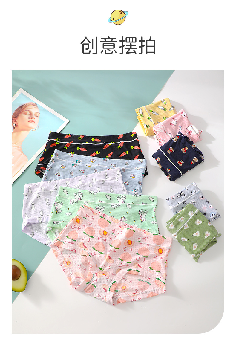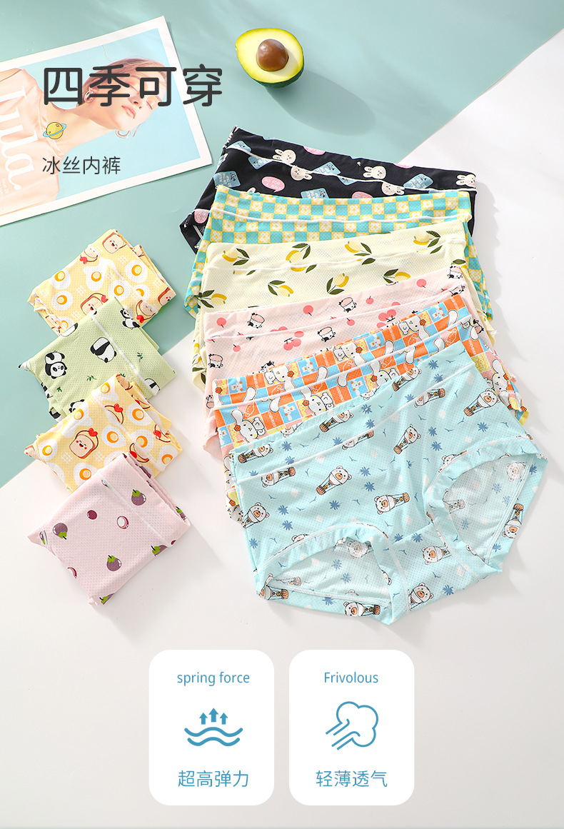 여름 얇은 얼음 실크 원활한 속옷 소녀 만화 인쇄 시원한 통기성 여성 팬티 공장 직접 판매스토어 가기