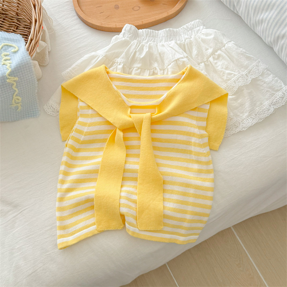 [핑크 하우스] 여성 보물 여름 도파민 줄무늬 조끼 어린이 여름 아름다운 조끼 베이스 코트 티셔츠
