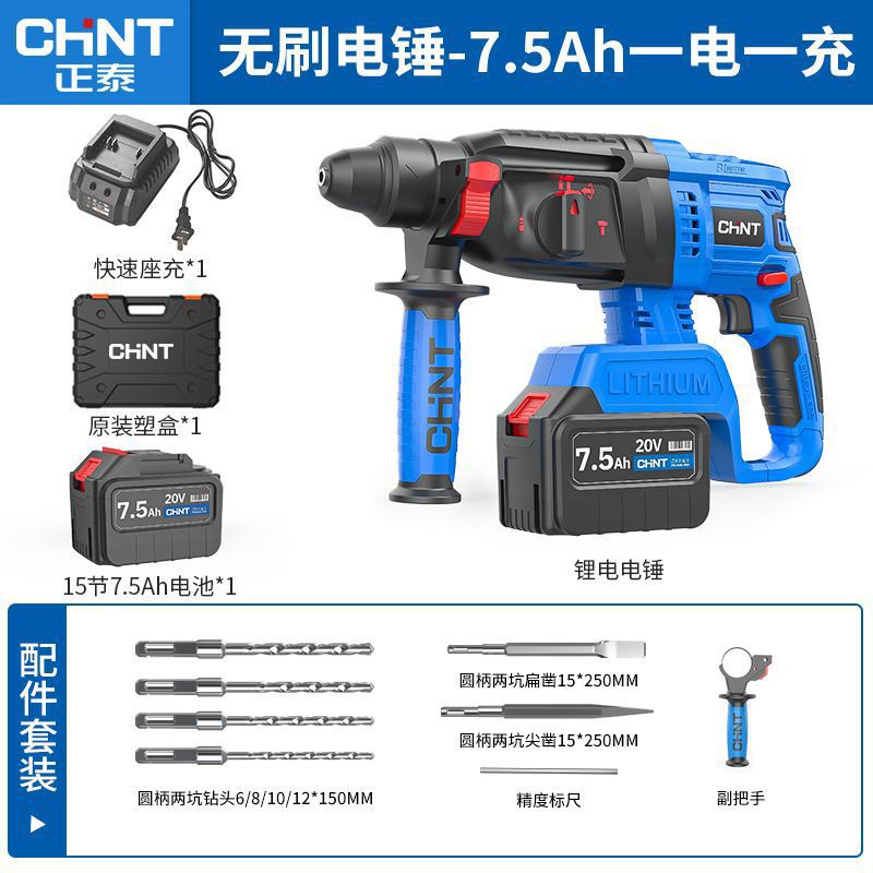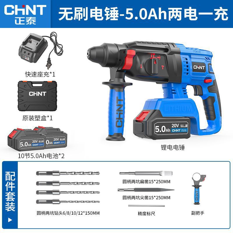 Chint 브러시리스 충전식 전기 해머 전기 도끼 3 목적 중장비 콘크리트 리튬 배터리 무선 산업용 충격 벽돌스토어 가기
