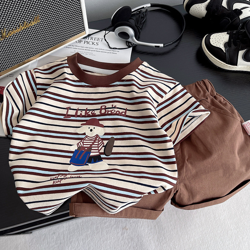 소년 여름 세트 새로운 서양식 2025 아기 반팔 옷 어린이 여름 투피스 옷 패션스토어 가기