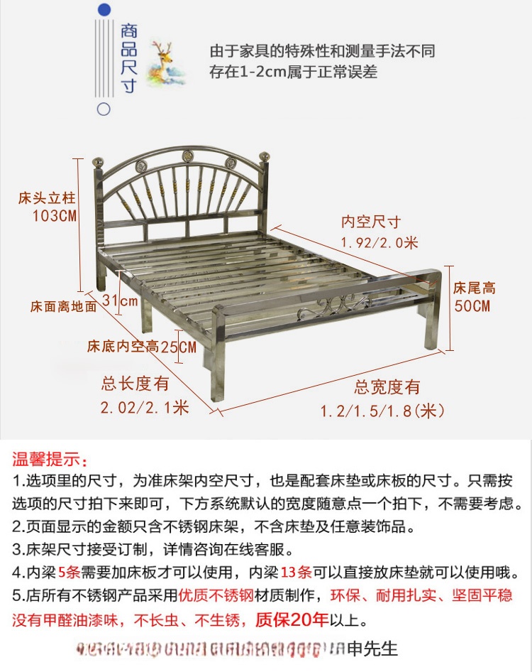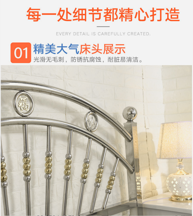 도매 스테인레스 스틸 침대 철 침대 1.95m 더블 침대 현대 미니멀리스트 임대 침실 침대 프레임 304 두꺼운스토어 가기