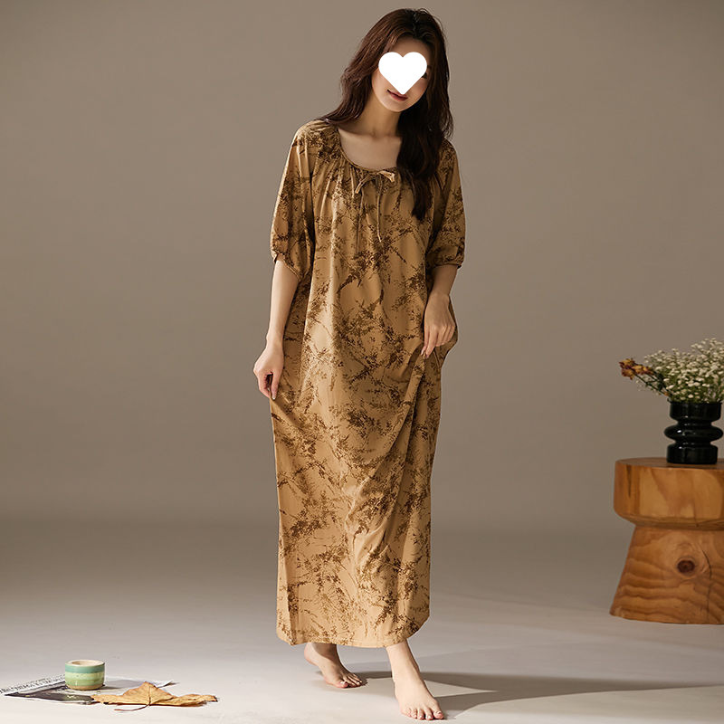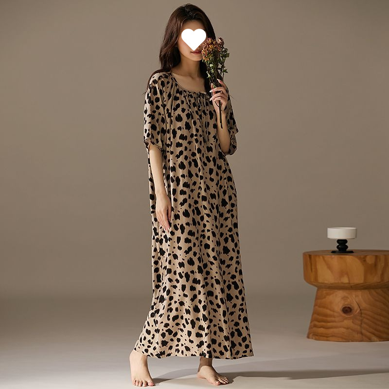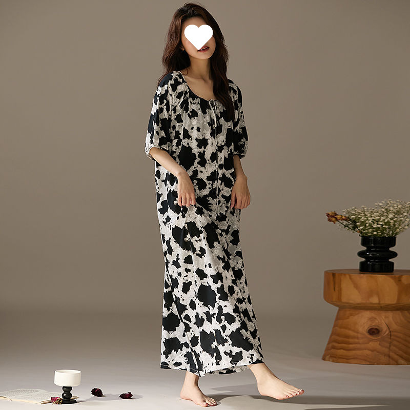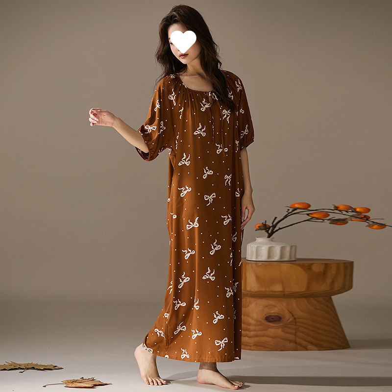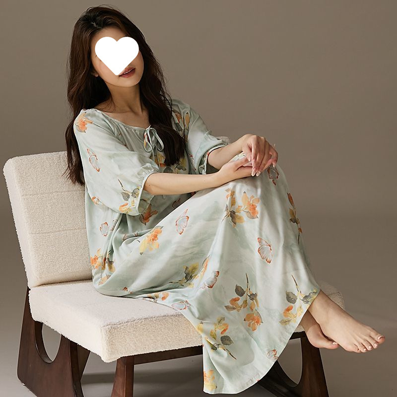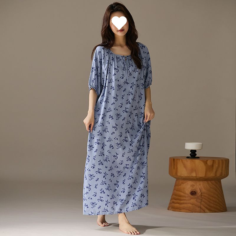 긴 원피스 면화 실크 잠옷 게으른 잠옷 여름 느슨한 플러스 사이즈 원피스 실크 얇은 반소매 치마 홈 옷스토어 가기