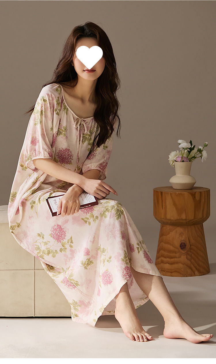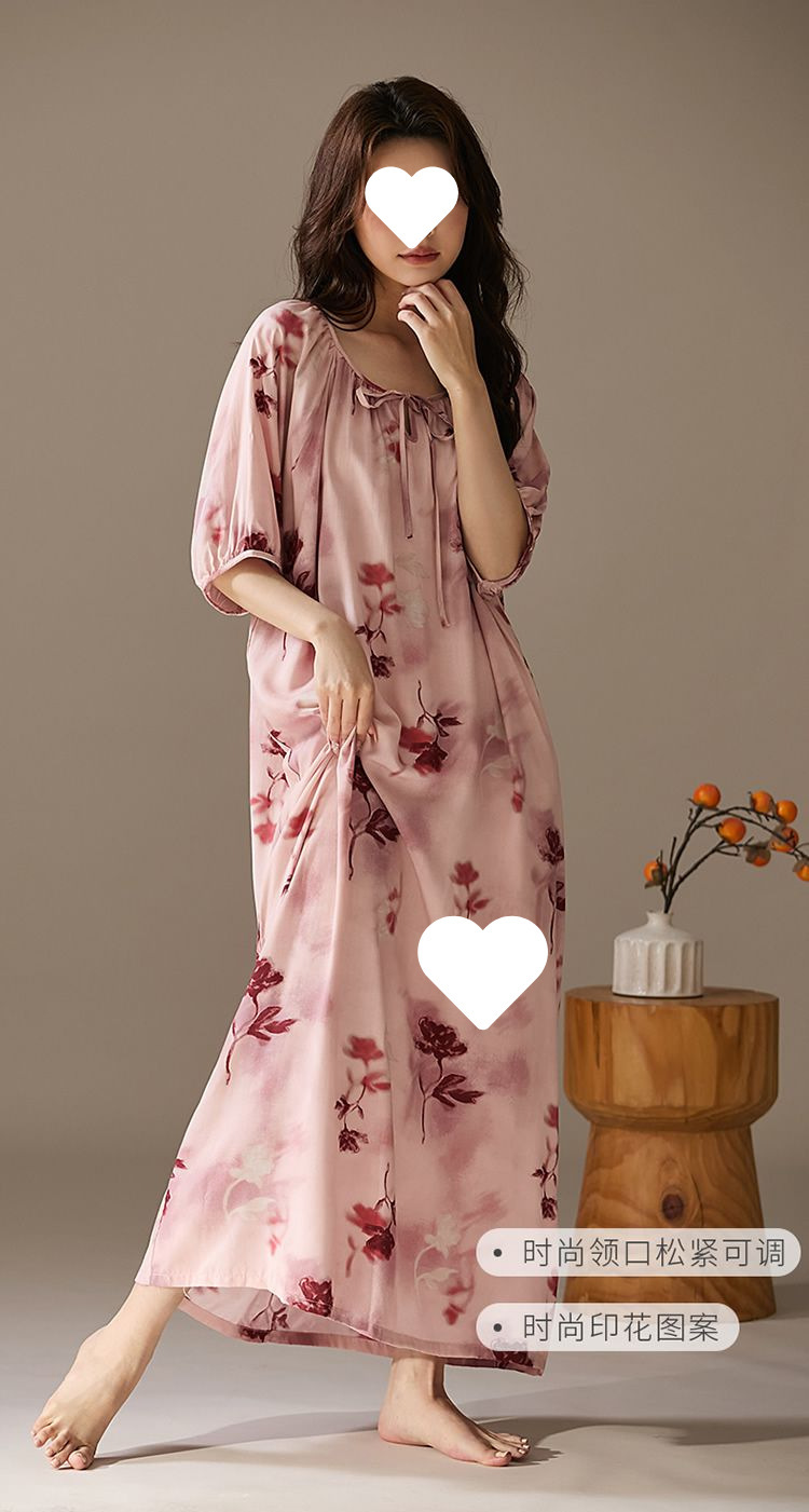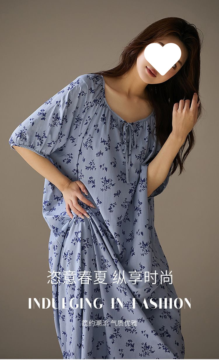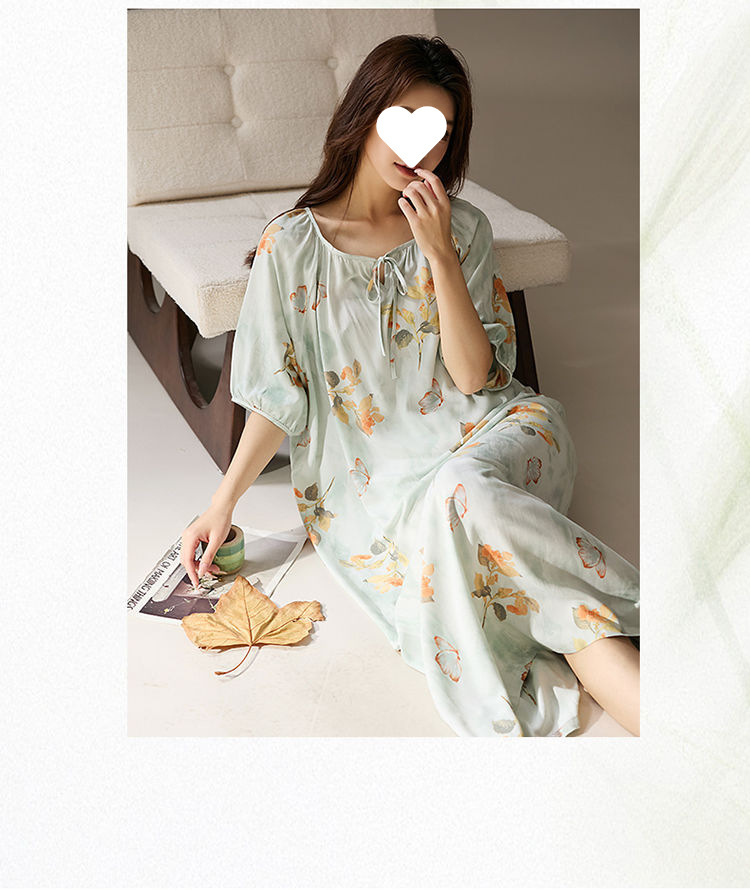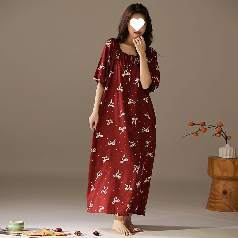 긴 원피스 면화 실크 잠옷 게으른 잠옷 여름 느슨한 플러스 사이즈 원피스 실크 얇은 반소매 치마 홈 옷스토어 가기