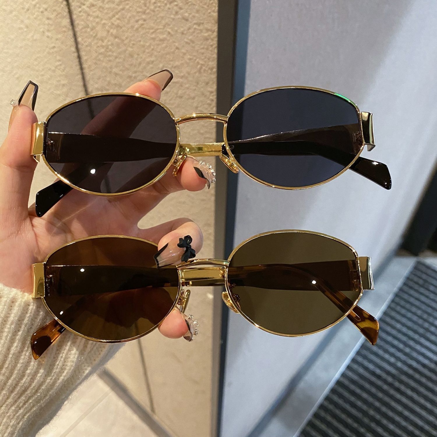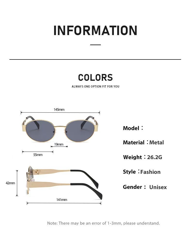 국경 간 새로운 개선문 타원형 금속 작은 프레임 선글라스 여성 하이 엔드 패션 스트리트 사진 선글라스 선글라스스토어 가기