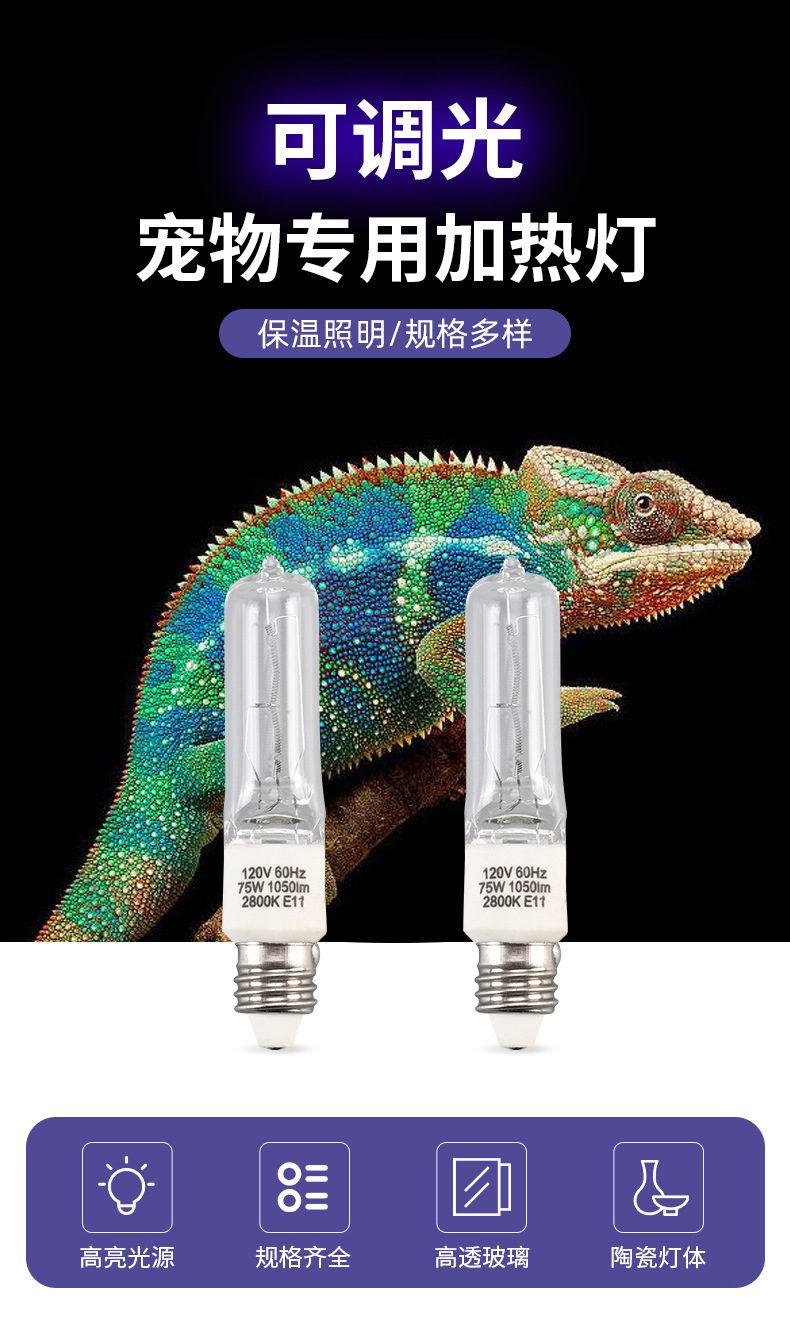 새로운 애완 동물 난방 램프 JDE11 할로겐 램프 디 밍이 가능한 세라믹 유리 물고기 탱크 애완 동물 난방 램프 필 라이트