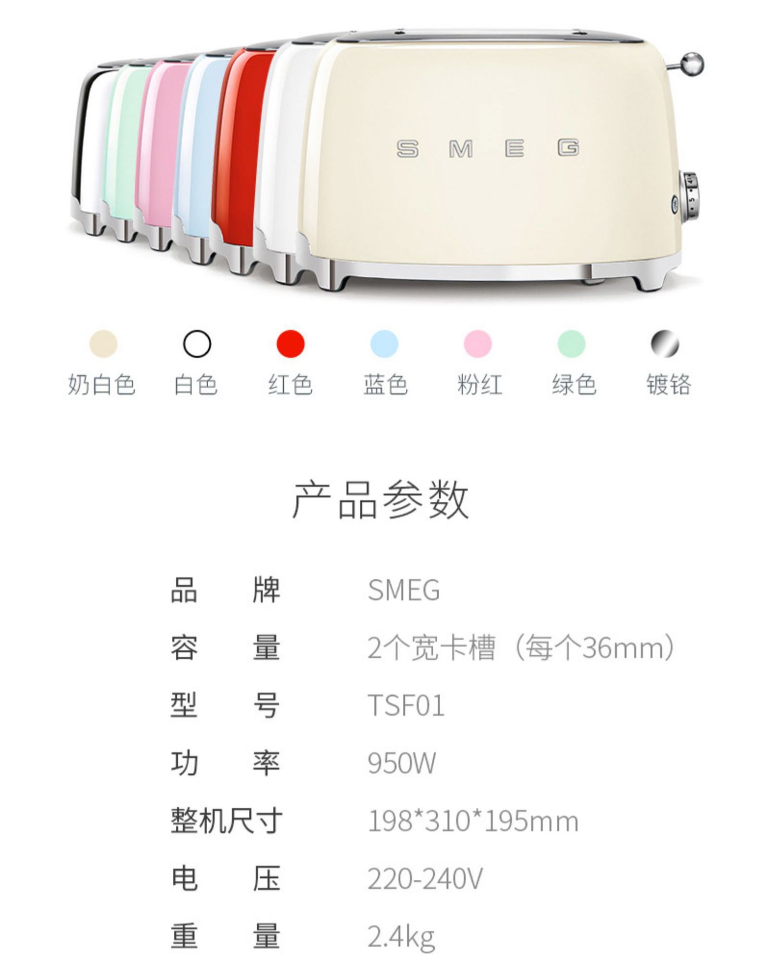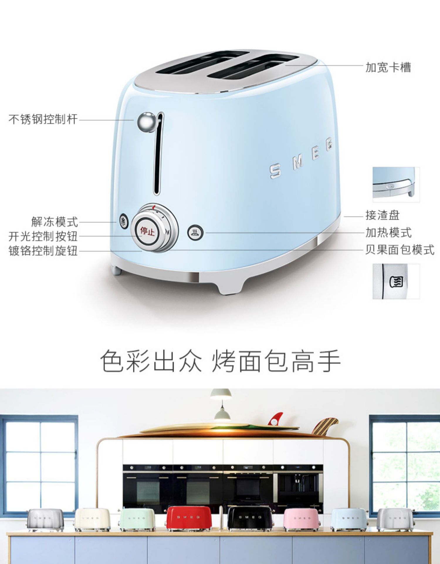 SMEG Smeg TSF01 다기능 레트로 토스터 토스터 드라이버 홈 난방 조식 기계스토어 가기