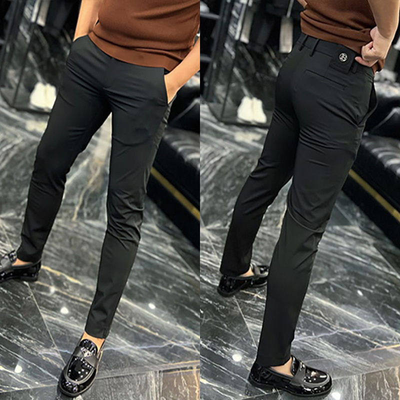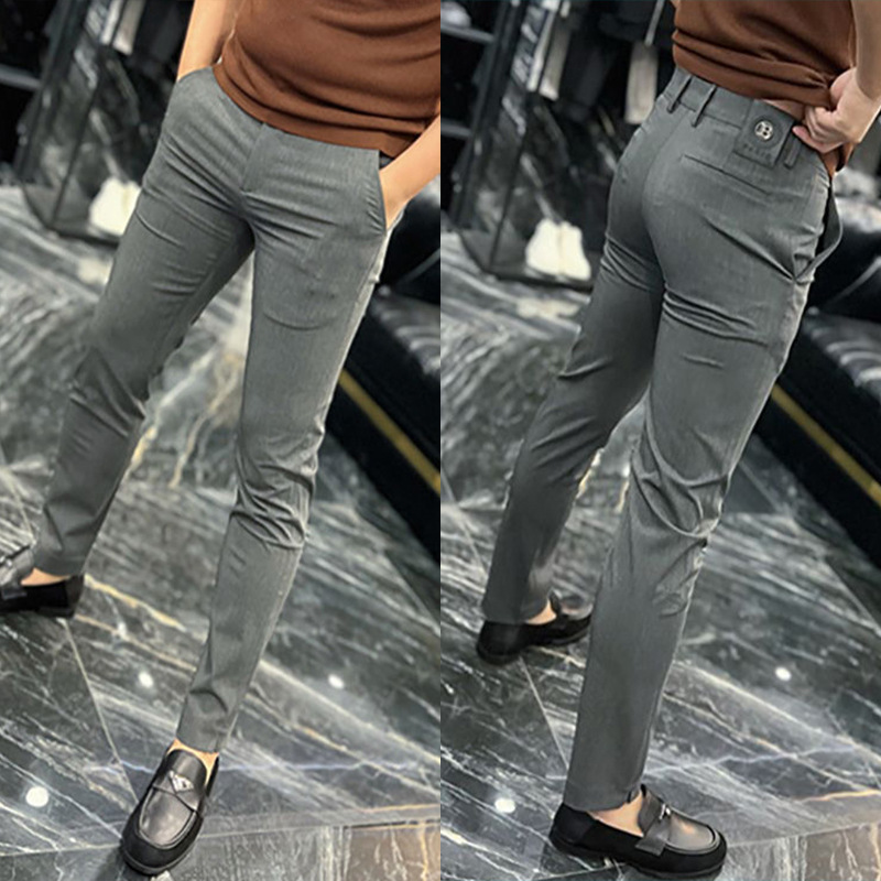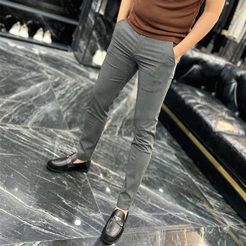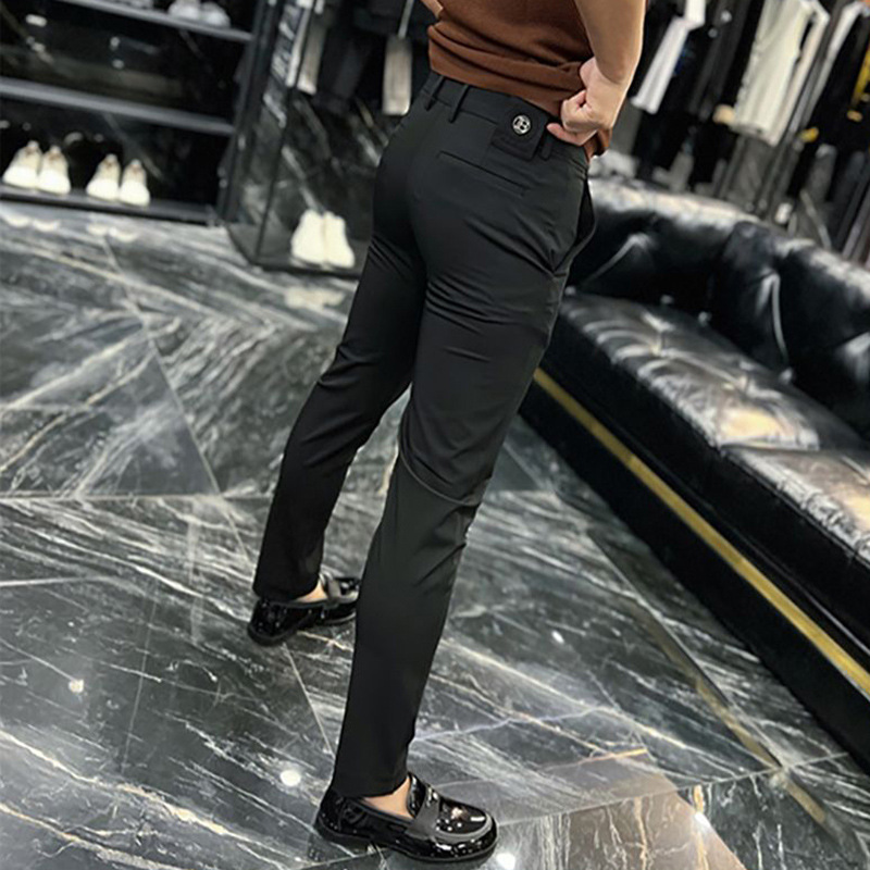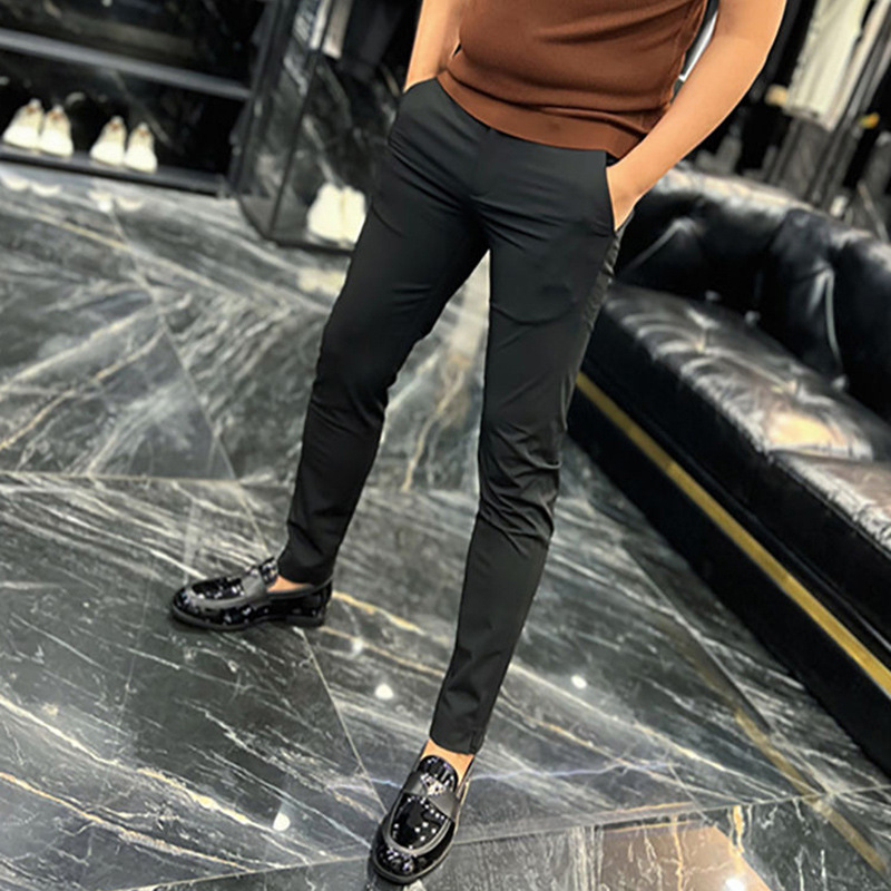하이 퀄리티 봄과 가을 새로운 캐주얼 바지 분할 다리 다리 작은 바지 슬림 핏 조커 작은 직선 다리 바지 남성용 유럽 비즈니스 바지스토어 가기