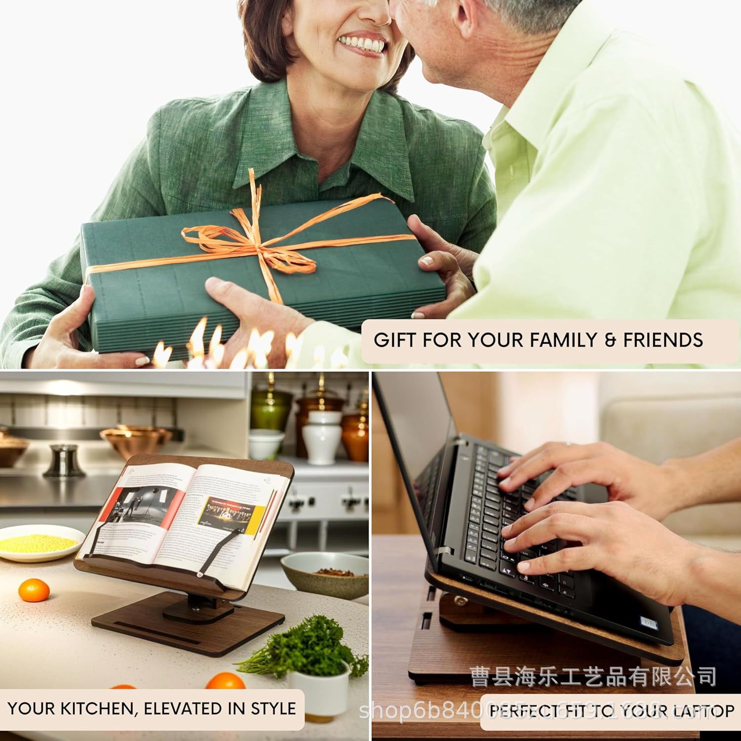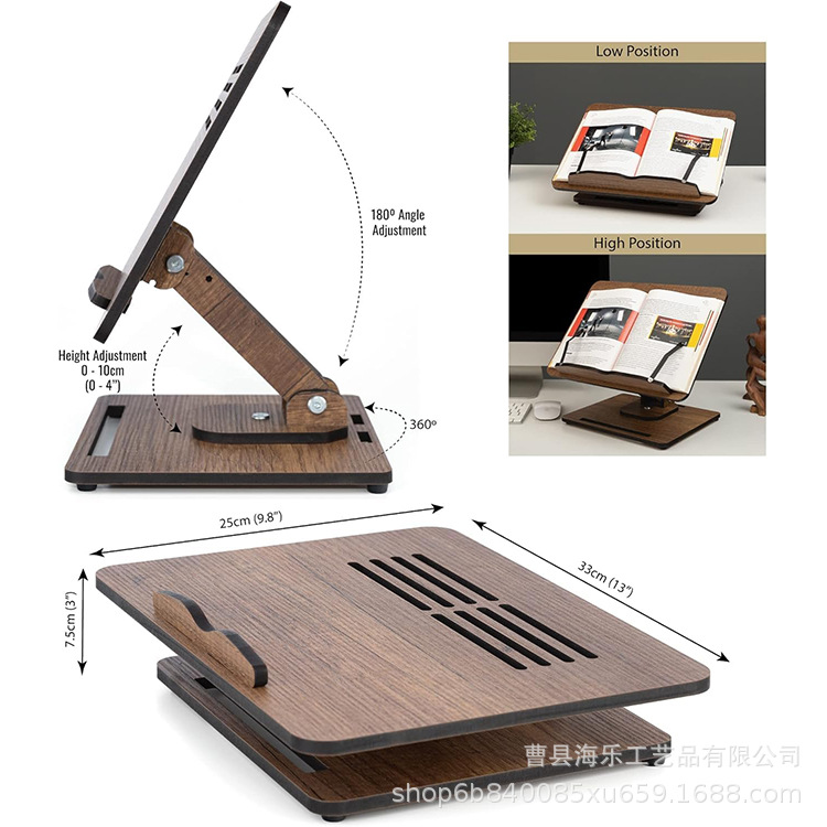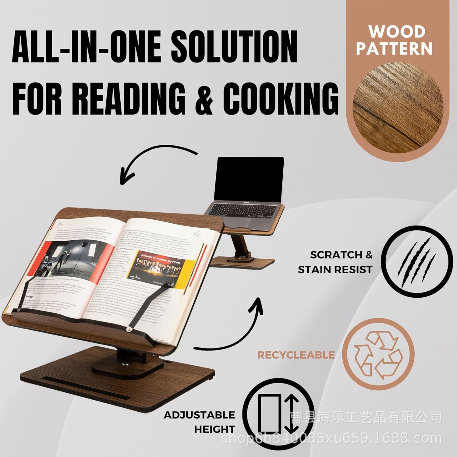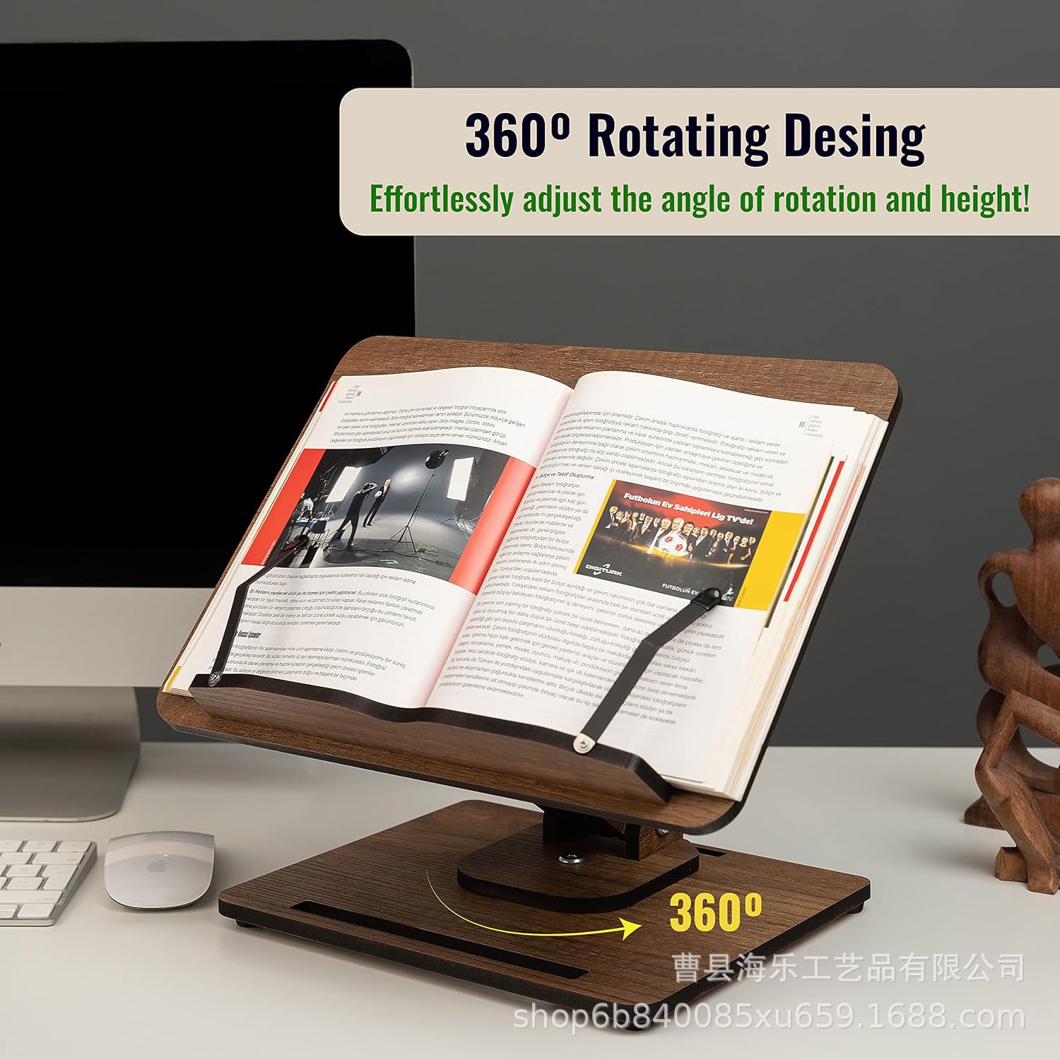 나무 수직 독서 랙 노트북 스탠드 회전 레시피 책꽂이 태블릿 음악 랙 높이 조정 가능스토어 가기