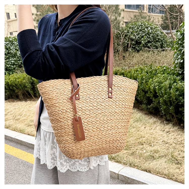 여성을위한 여름 트렌드 밀짚 가방 2025 새로운 해변 휴가 캐주얼 비치 가방 대용량 어깨 가방스토어 가기