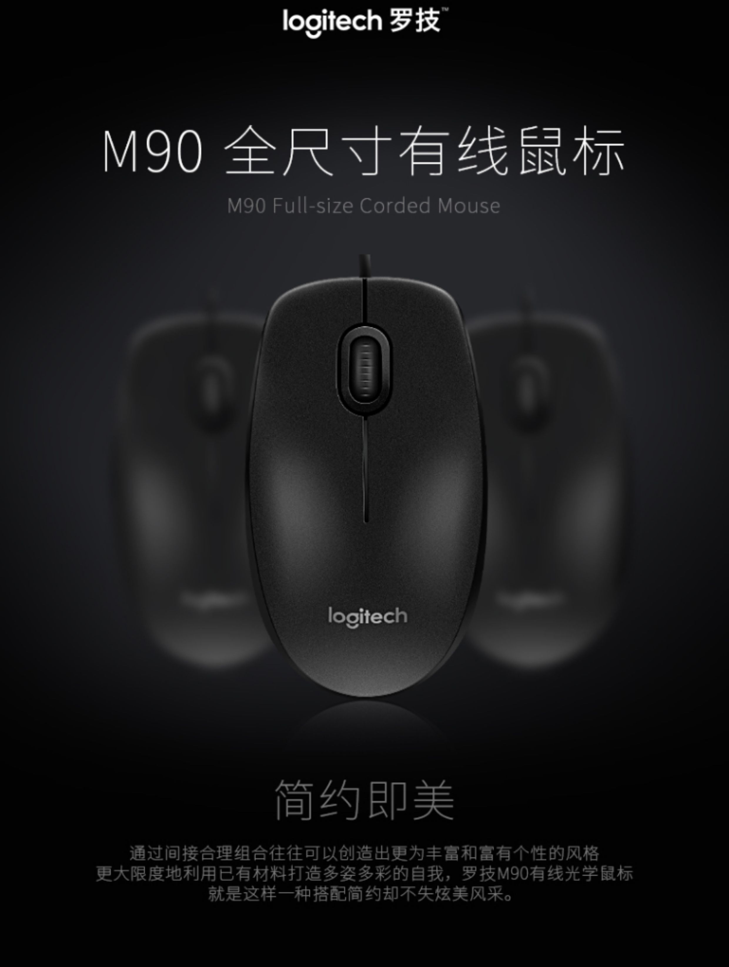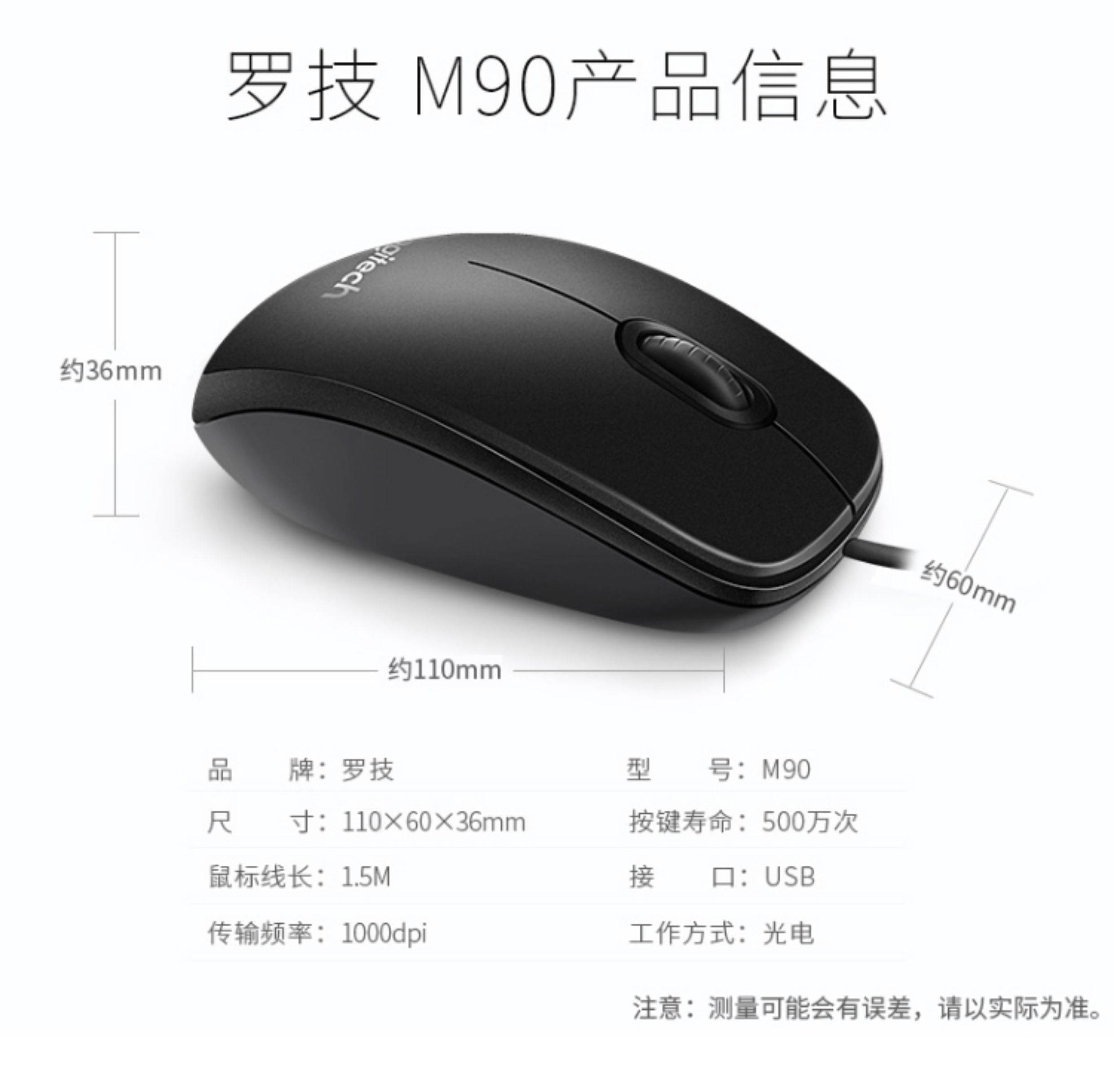 풀기 Logitech M90 마우스 유선 데스크톱 USB 노트북 홈 오피스 키보드 인체 공학적스토어 가기