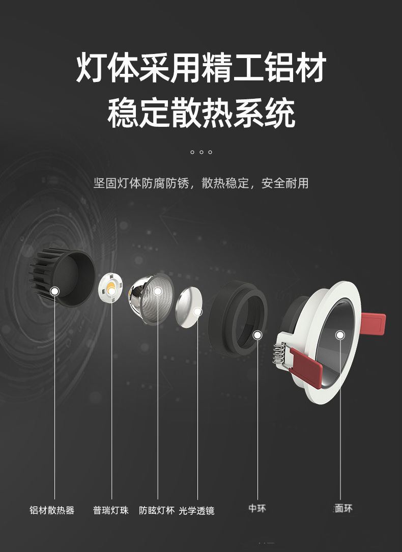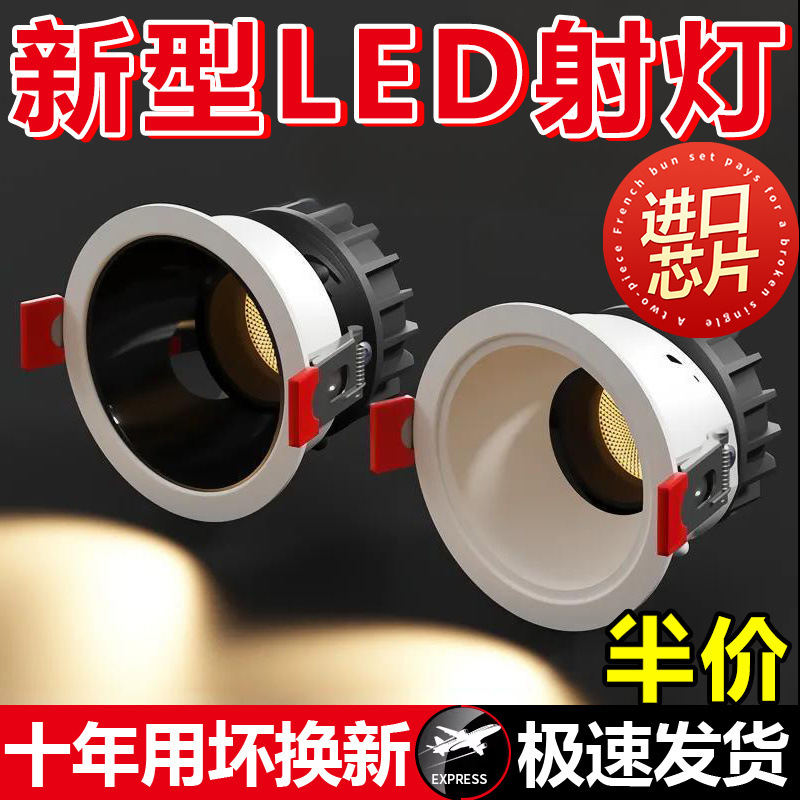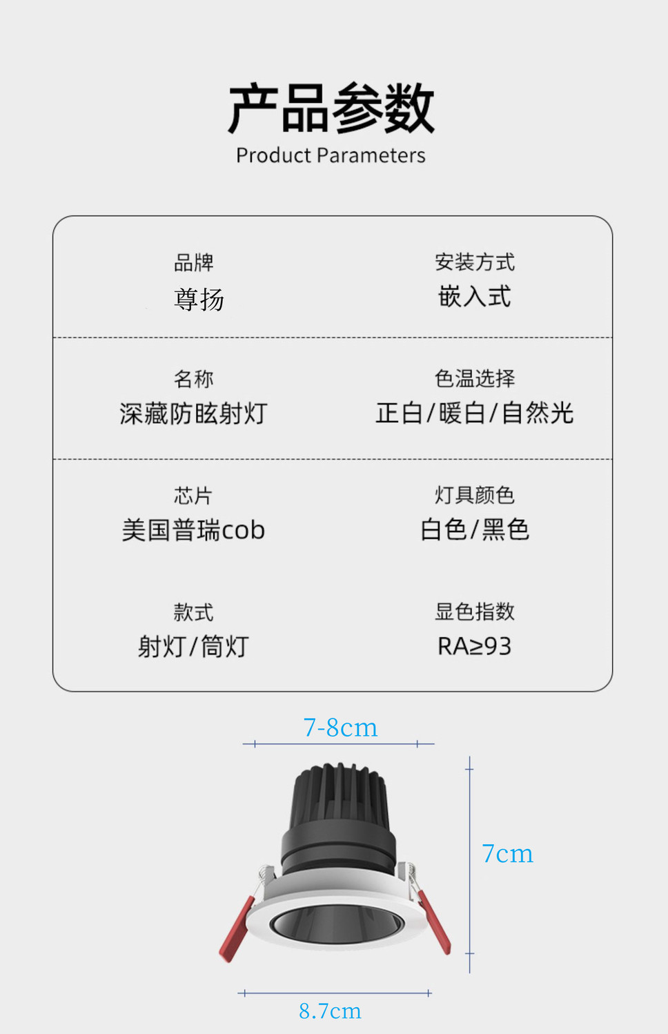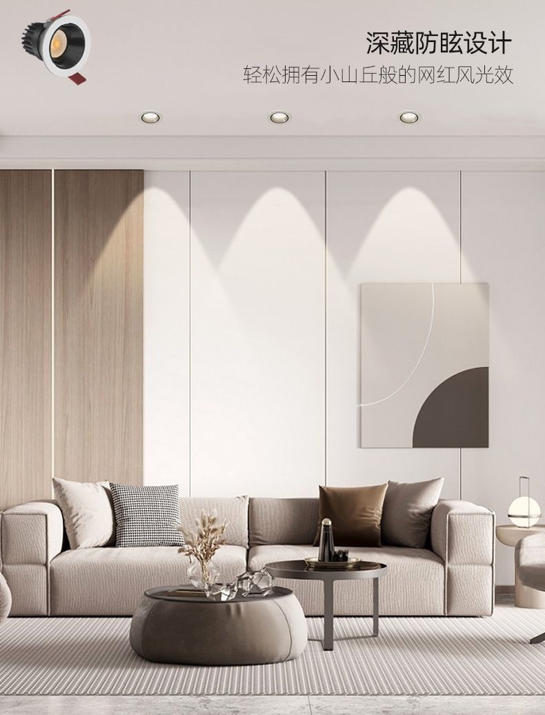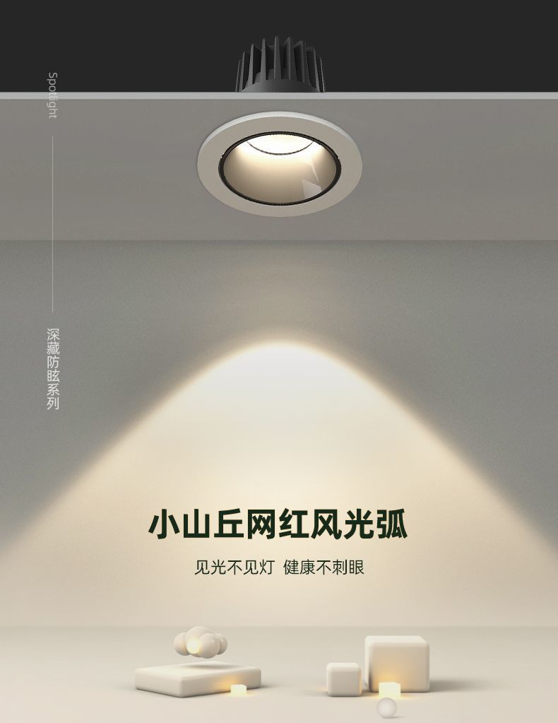 작은 언덕 스포트라이트 내장형 깊은 컵 눈부심 방지 cob 벽 세척 램프 3색 디밍 검정색 가장자리 새로운 LED 통 대외 무역스토어 가기