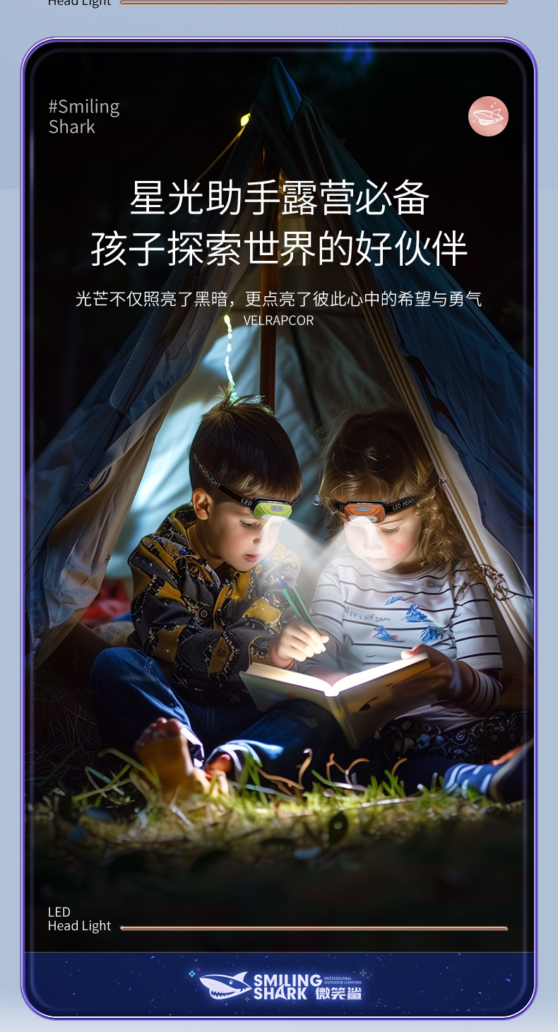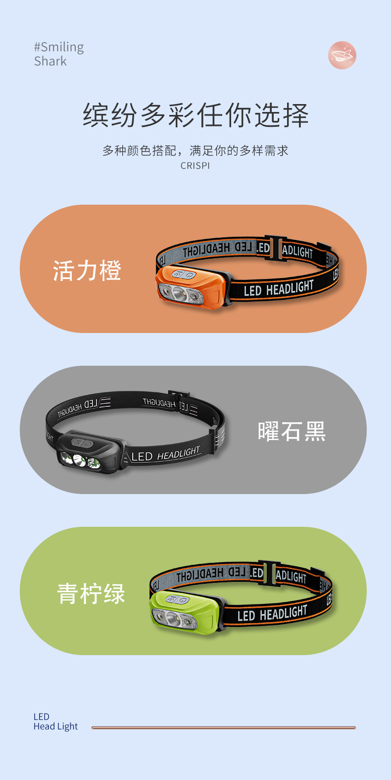 국경 간 새로운 야외 캠핑 다채로운 헤드 라이트 어린이 미니 휴대용 하이라이트 헤드 라이트 흔들기 센서 헤드 라이트