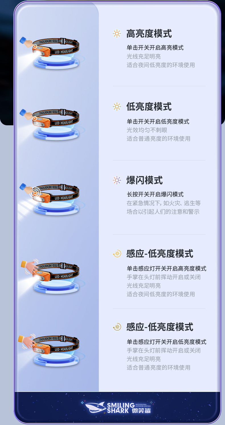 • K71 5등 고정 초점 헤드라이트 - 실버 B형 [플라스틱, 내장 배터리 400MAH]